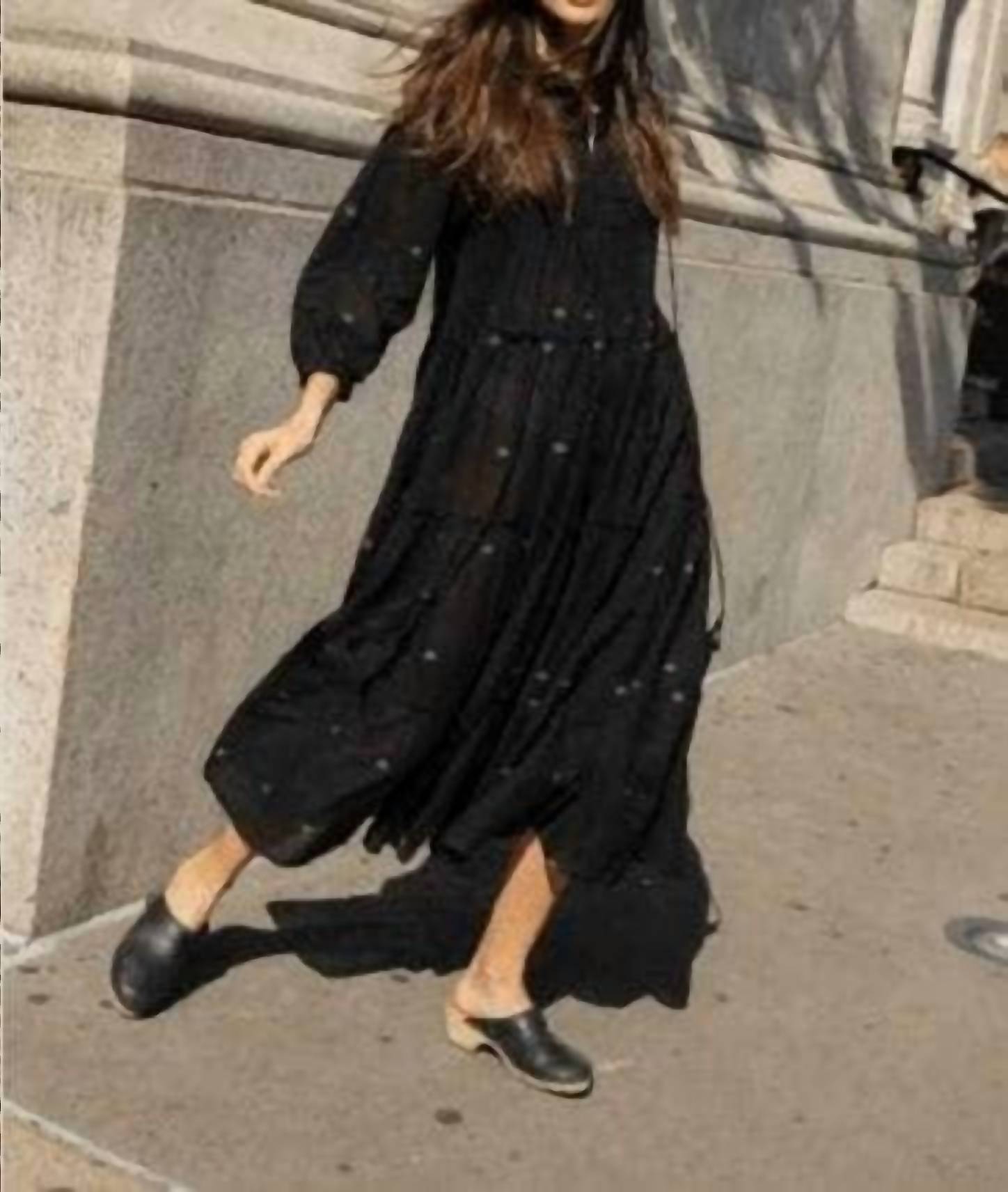 The perfect length dress does exist. Unveiling the Casandra Midi Dress by Guadalupe Design, a sophisticated choice for your next holiday party. Crafted from 100% solid black cotton, this dress features a flattering A-line silhouette, long sleeves, and a V-neckline. Closure is a convenient pull-on style. Care for this elegant piece is simple with machine wash cold, low drying, and it is dry cleanable.