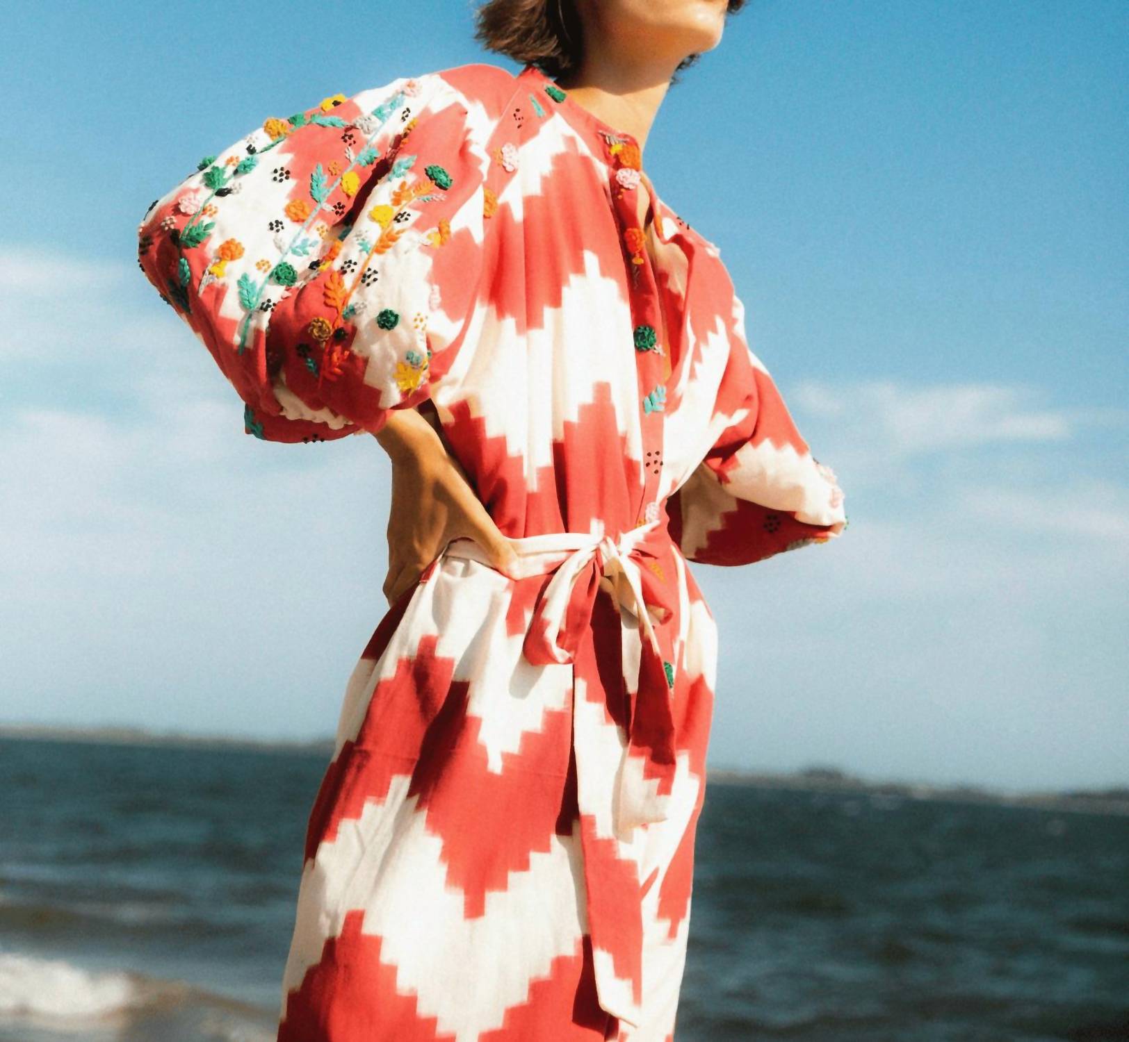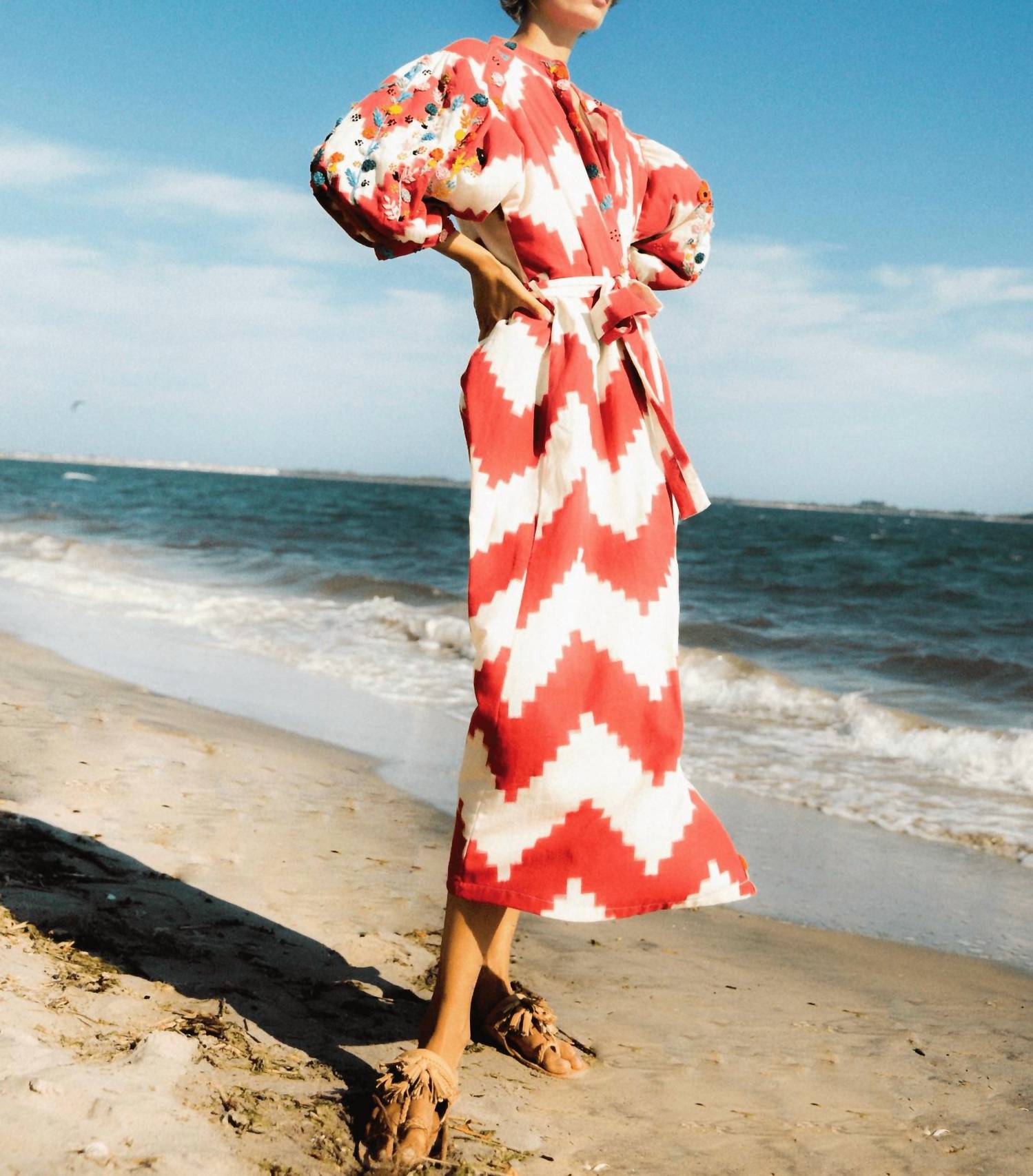 Casual, comfortable and cute! The dress that you'll be reaching for all season long. Elevate your summer wardrobe with the Rambagh Flower Dress by Guadalupe Design, a standout piece in vibrant red. Crafted from cotton, this patterned wrap dress features long sleeves and a collar neckline, perfect for a vacation-ready look. Effortlessly securing with a button closure, it channels 90s fashion trends, making it an ideal choice for seasonal celebrations. Care instructions include machine washing and laying flat to dry, ensuring its continued vibrancy and shape.