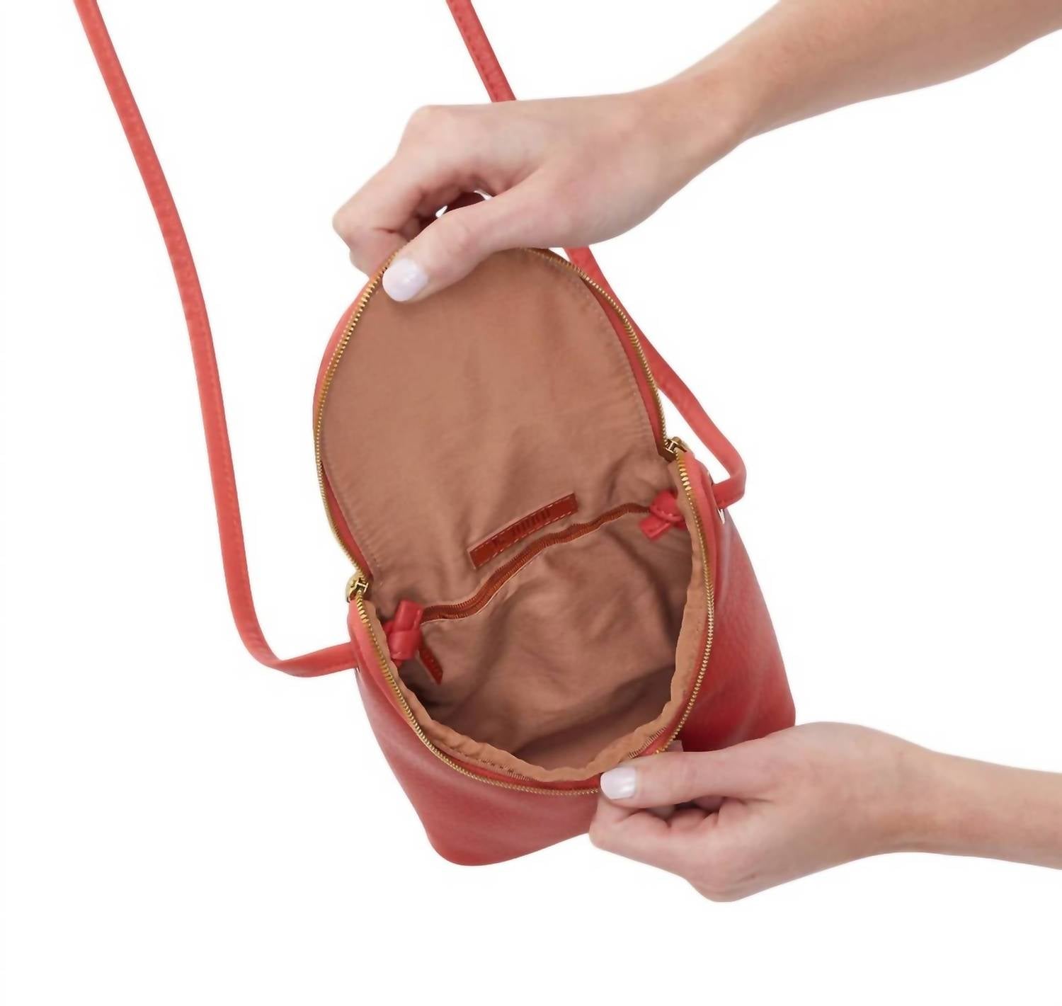 A casual and cute take on everyone's favorite crossbody bag. Meet the Women's Fern Crossbody Bag by HOBO, a compact and stylish option in a striking Red Clay hue. Crafted from iconic pebbled leather, this bag offers a customized fit with its adjustable strap. It features a convenient zip closure, exterior phone pocket, and interior zip pocket, making it an ideal hands-free companion for daily use or travel. Care: Wipe clean with a soft, damp cloth and avoid prolonged exposure to direct sunlight and moisture.