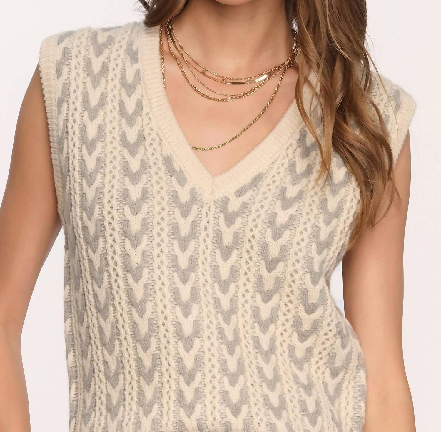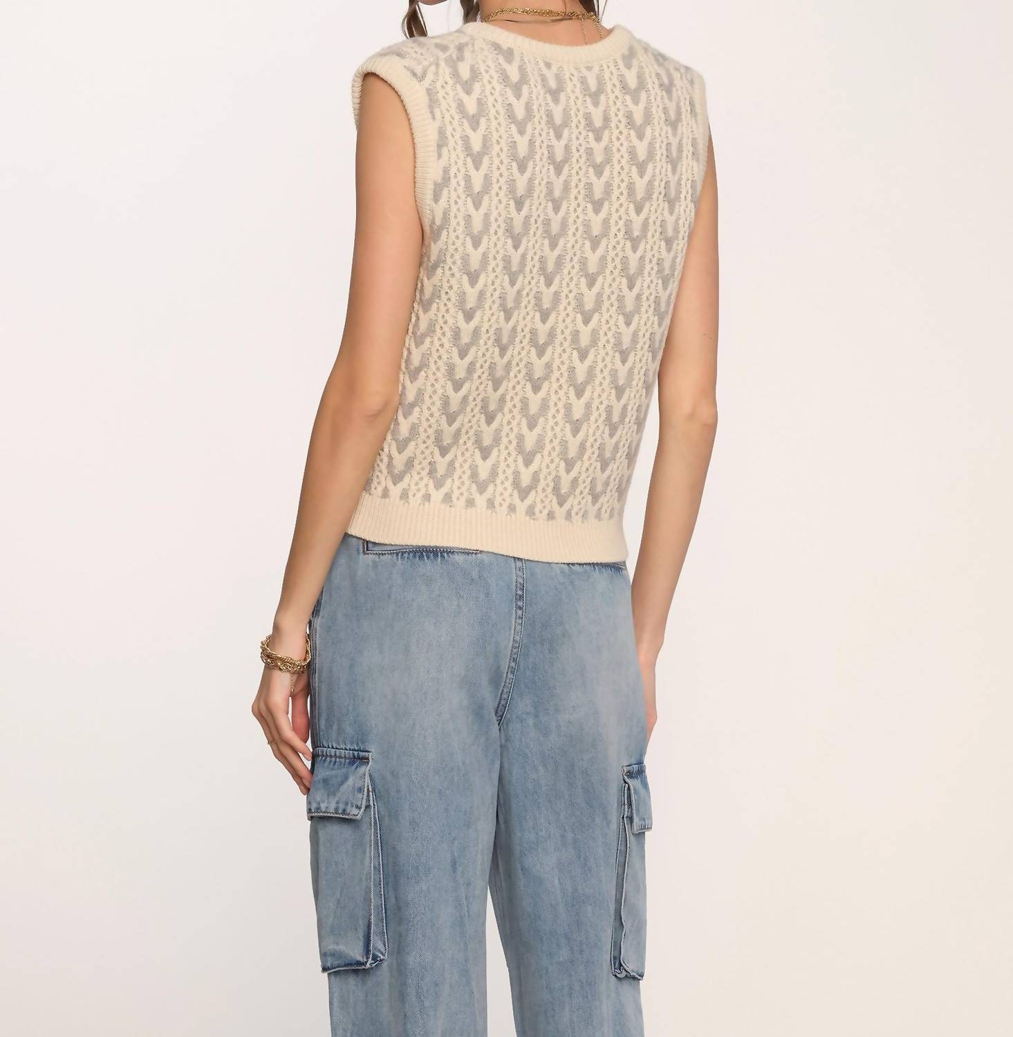 That extra layering piece you didn't know you needed! Discover the Phoenix Vest by Heartloom, a chic addition to your wardrobe in a timeless ivory shade. This sleeveless vest is crafted from high-quality Acrylic, featuring a stylish V-neckline and an eye-catching patterned design. Made for effortless wear, it boasts a convenient pull-on closure. For easy maintenance, simply machine wash as needed.