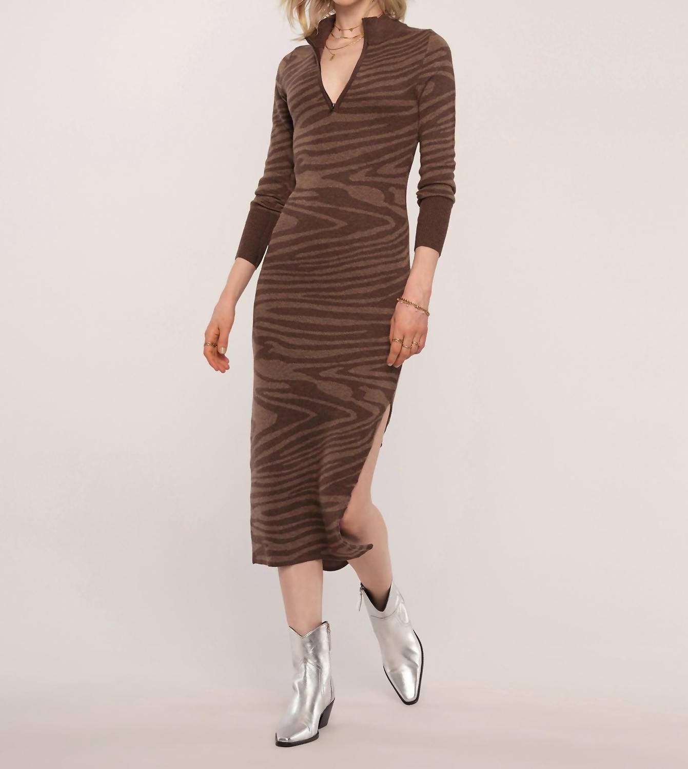 The perfect length dress does exist. Elevate your look with the Sonoya Dress by Heartloom, crafted in a luxurious mink melange yarn. This patterned, long sleeve midi dress features a figure-hugging bodycon silhouette and an elegant V-neckline. Its ultra-soft jacquard knit fabric is composed of 44% Polyester, 30% Acrylic, 20% Nylon, and 6% Wool, ensuring both comfort and style. The half zipper closure adds a modern touch, while the side slit offers a hint of allure. Perfect for any occasion, pair this dress with heels or flats for effortless elegance.