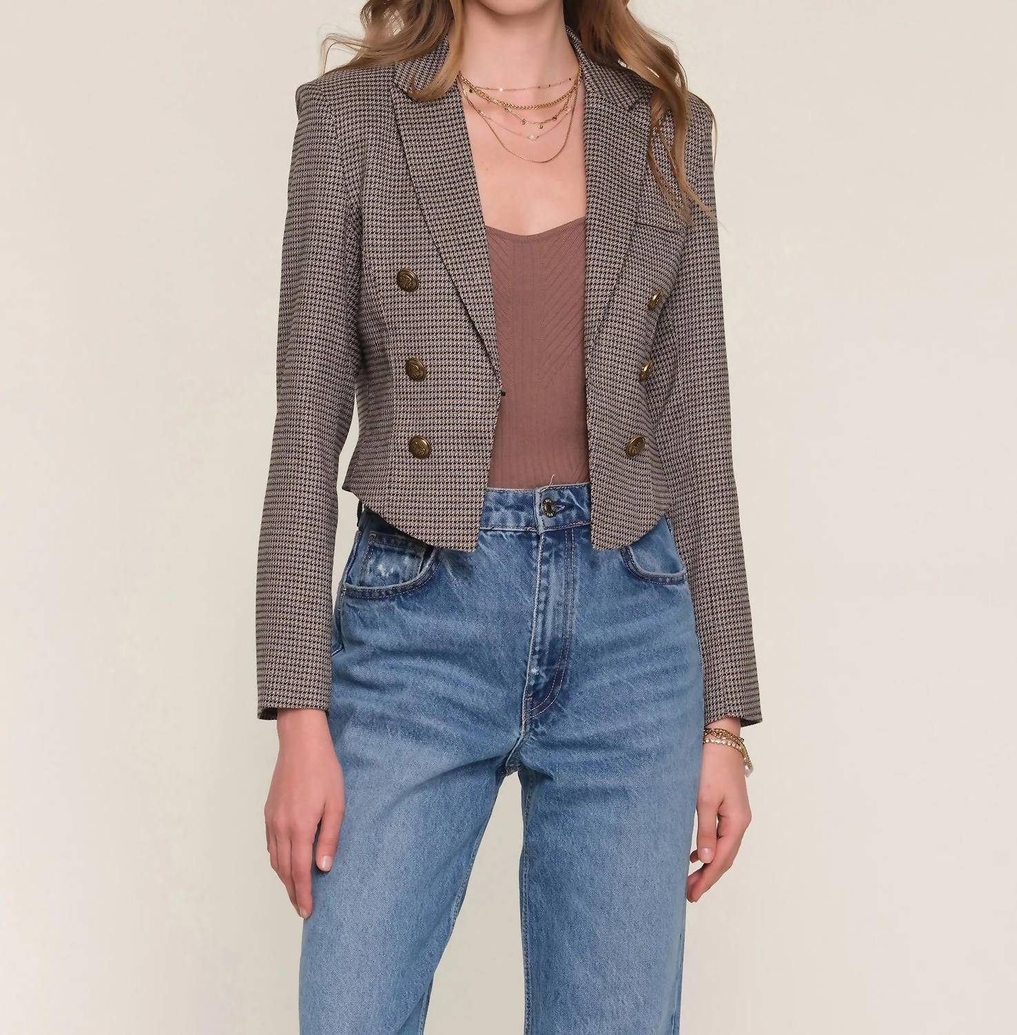 Tailored to perfection, this blazer will be your go-to jacket for years to come. Elevate your spring wardrobe with the Ophelia Blazer by Heartloom, a minimalist piece in chic latte. This women's blazer features long sleeves and a slim fit, crafted from 80% Polyester, 17% Rayon, and 3% Spandex. Designed with a cropped length of 21 inches from the high point of shoulder and adorned with novelty crest buttons, it secures with a hook-and-eye front closure. Wear it over your favorite fall dress or denim for an effortlessly sophisticated look.
