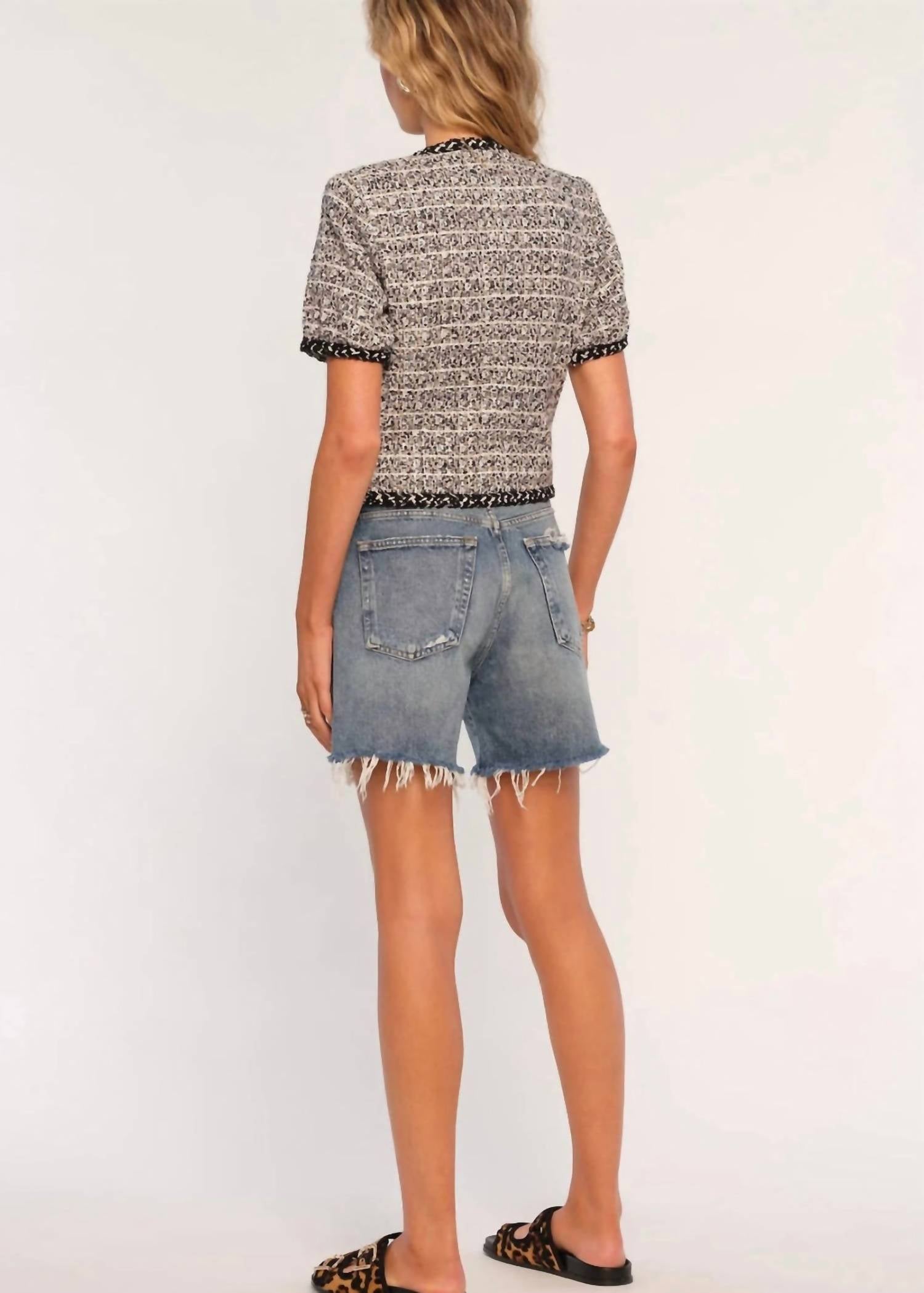 A classic fit that works just as good buttoned as it does left open. The Susana Short Sleeve Cardigan by Heartloom is a stylish choice for your spring travels, featuring a patterned design in a versatile indigo hue. It boasts a classic crewneck and short sleeves for a comfortable fit. The cardigan is equipped with a button closure for easy wear. Care instructions recommend dry cleaning to maintain its quality.