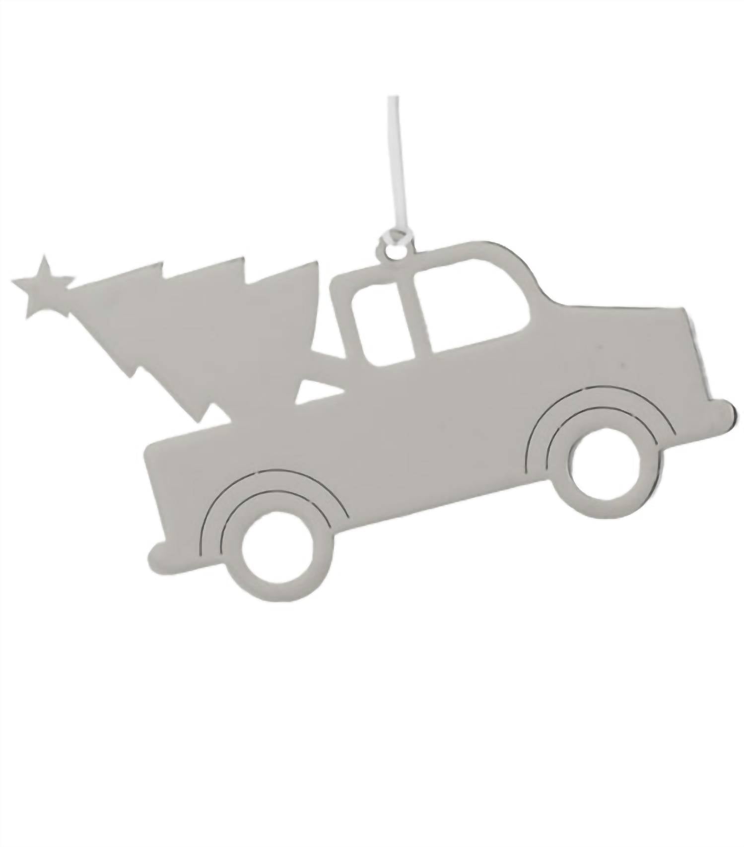 This ornament features a nostalgic truck design in a shiny nickel-plated finish, capturing the essence of holiday tradition and cheer. The addition of a delicate white tassel enhances its festive appeal, making it a perfect choice for adorning your Christmas tree or decorating your home during the holiday season. 3.375" x 2.25". White Gift Box.