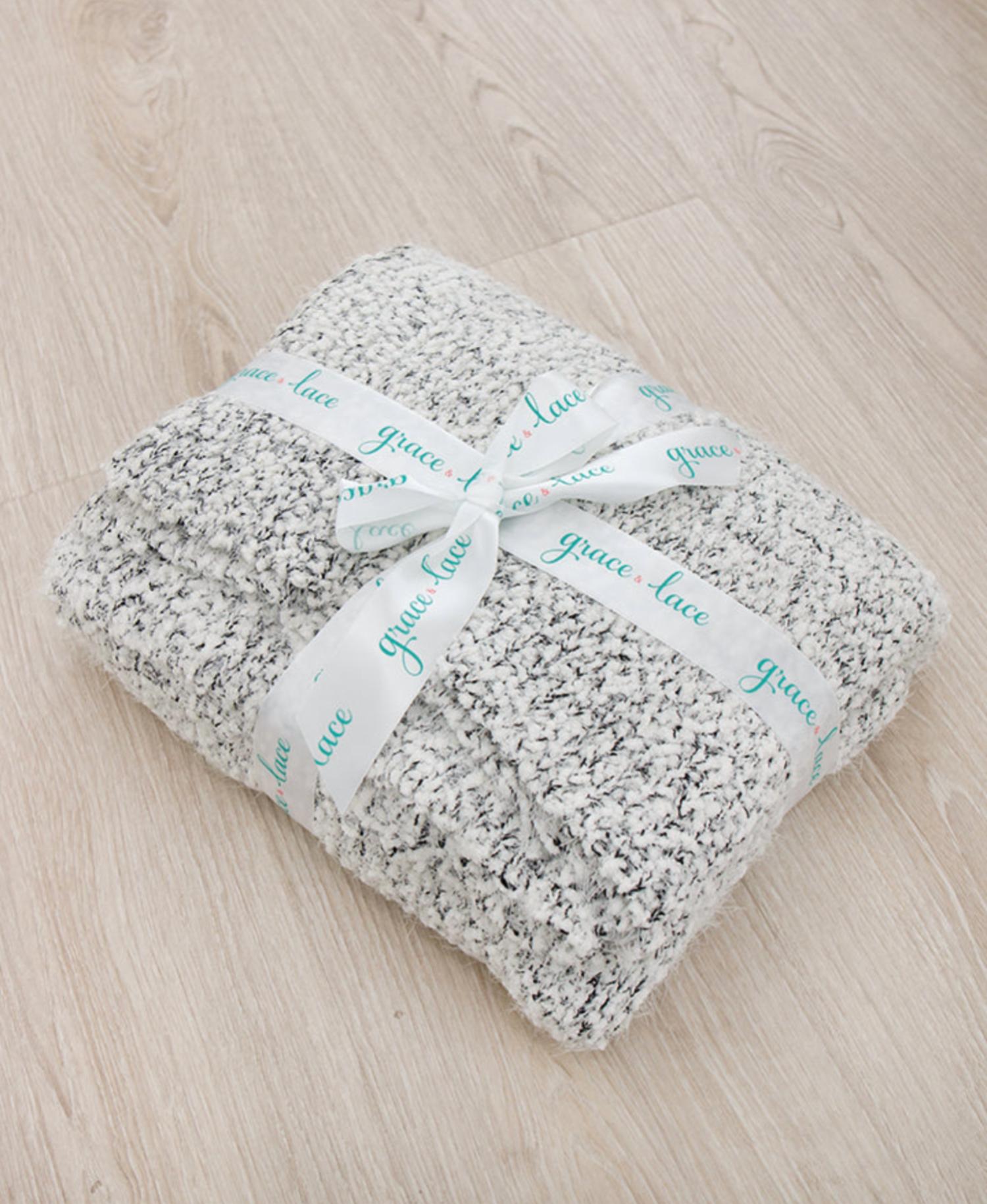 Introducing the Ultra Soft Throw Blanket by Grace and Lace, an indulgent addition to any home with its luxurious, weighty wubby knit fabric. In a sophisticated blend of black and white, this blanket measures a generous 65" in length and 56" in width. Crafted from a rich composition of 55% Polyester, 31% Polyamide, and 14% Acrylic, it's designed for both style and comfort. Care is effortless with options to hand wash cold or machine wash on a gentle cycle, with a recommendation to lay flat to dry.