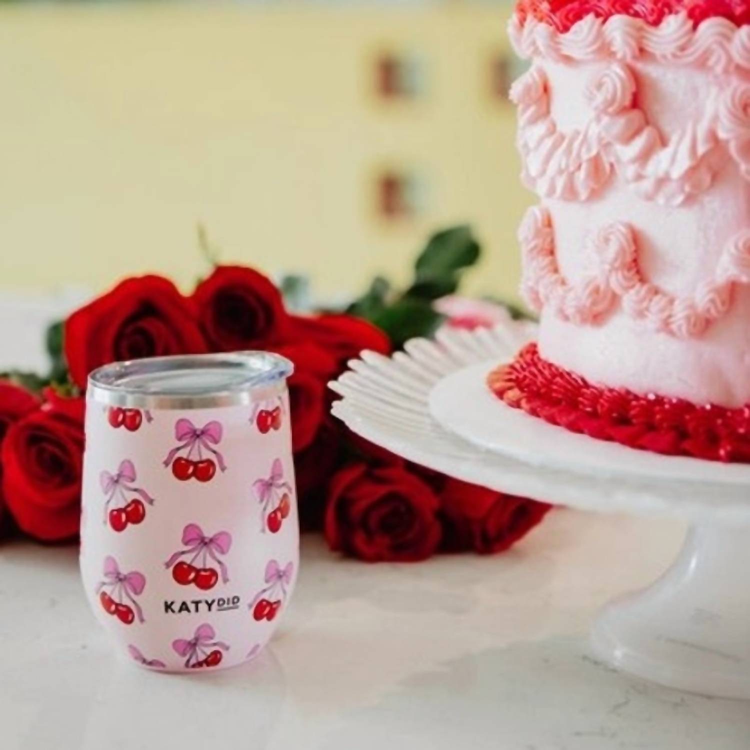 Katydid - Cherries and Coquette Bows Insulated Stainless Steel Wine Tumbler