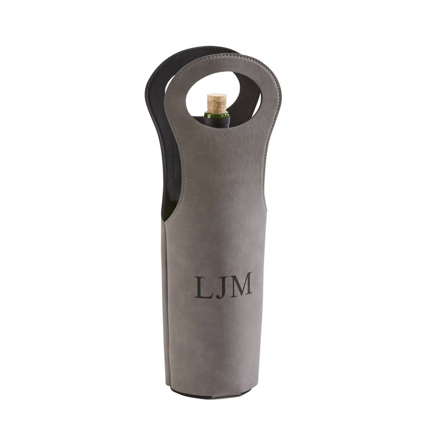 Presenting the Leatherette Wine Holder - 14.5" by Creative Gifts International, the epitome of stylish convenience for wine enthusiasts. Crafted from durable grey faux leather, this holder stands at 14.5 inches tall, perfectly accommodating various bottle sizes. Its sleek design allows for effortless access and an elegant display, making it perfect for any sophisticated gathering.