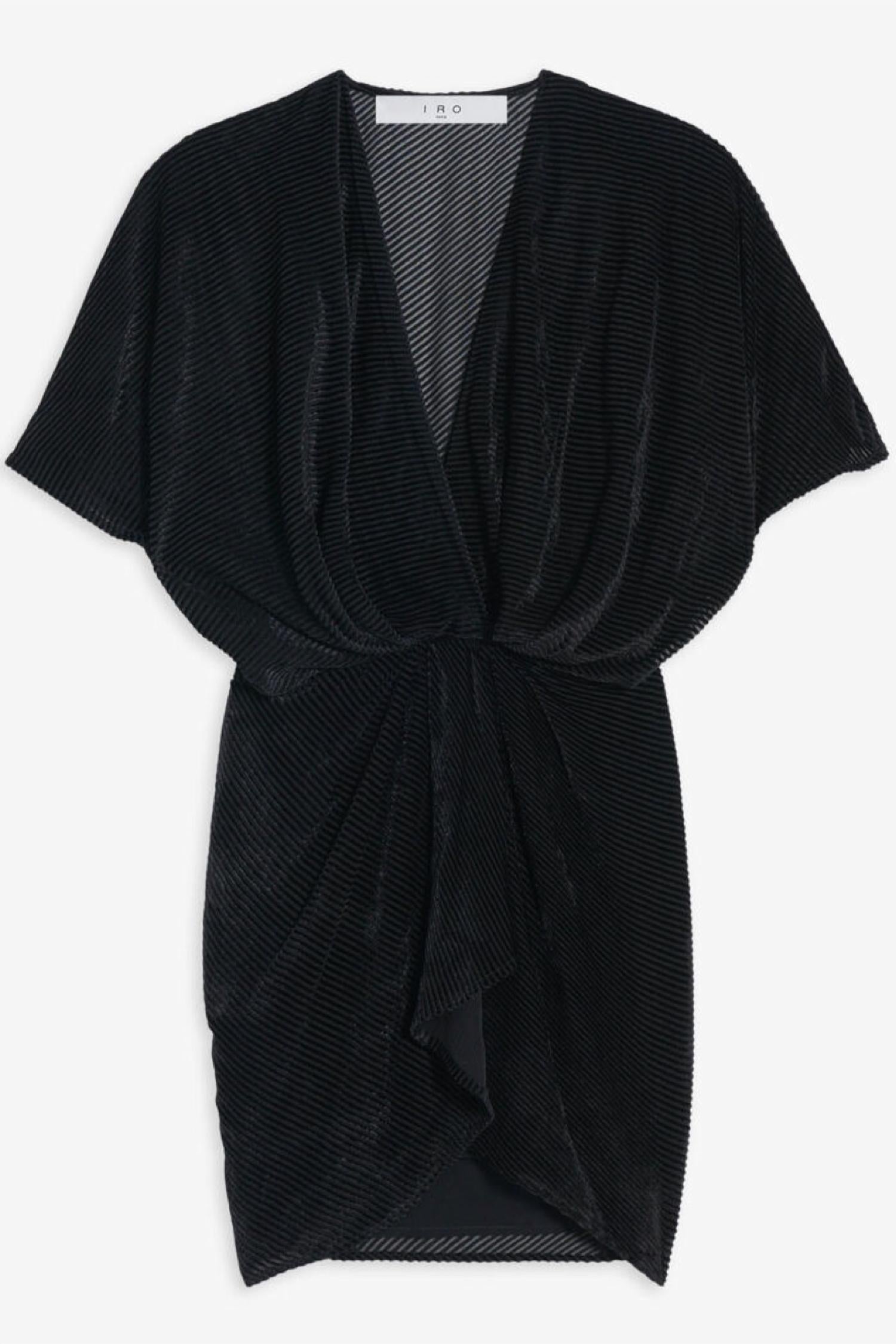 A short and breezy dress for those warmer days. Introducing the Zely Mini Dress by IRO, a stunning choice for effortless elegance. This black striped mini-dress features short sleeves and a flattering V-neck, highlighted with delicate ruffle details. Crafted from a luxurious blend of 68% viscose and 32% silk, it offers a soft feel and sophisticated drape. The dress is completed with a convenient zip closure and is imported, requiring dry clean care for maintenance. Perfect for a cocktail party or a special occasion.