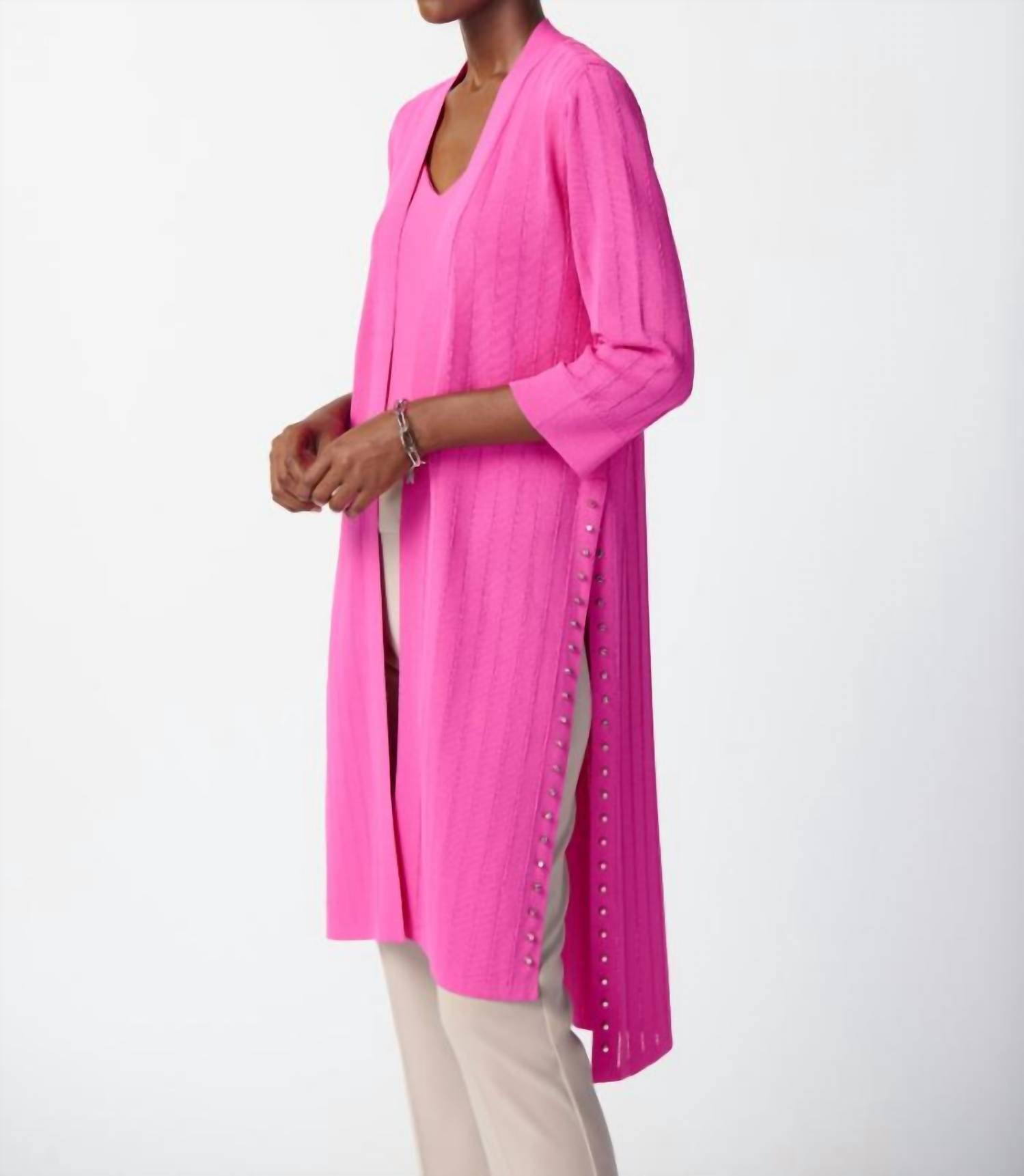 Throw this adorable cardigan over any cami or tank top. Elevate your summer wardrobe with the Women's Light Viscose Nylon Cover Up by JACHS NEW YORK in striking Ultra Pink. Made with 65% Viscose Rayon and 35% Nylon, this lightweight cardigan features three-quarter bell sleeves and a V-neckline for a stylish fit. Adorned with side slits and stud detailing, it adds an edgy touch to any outfit. For care, hand wash in cold water with like colors and lay flat to dry in the shade.