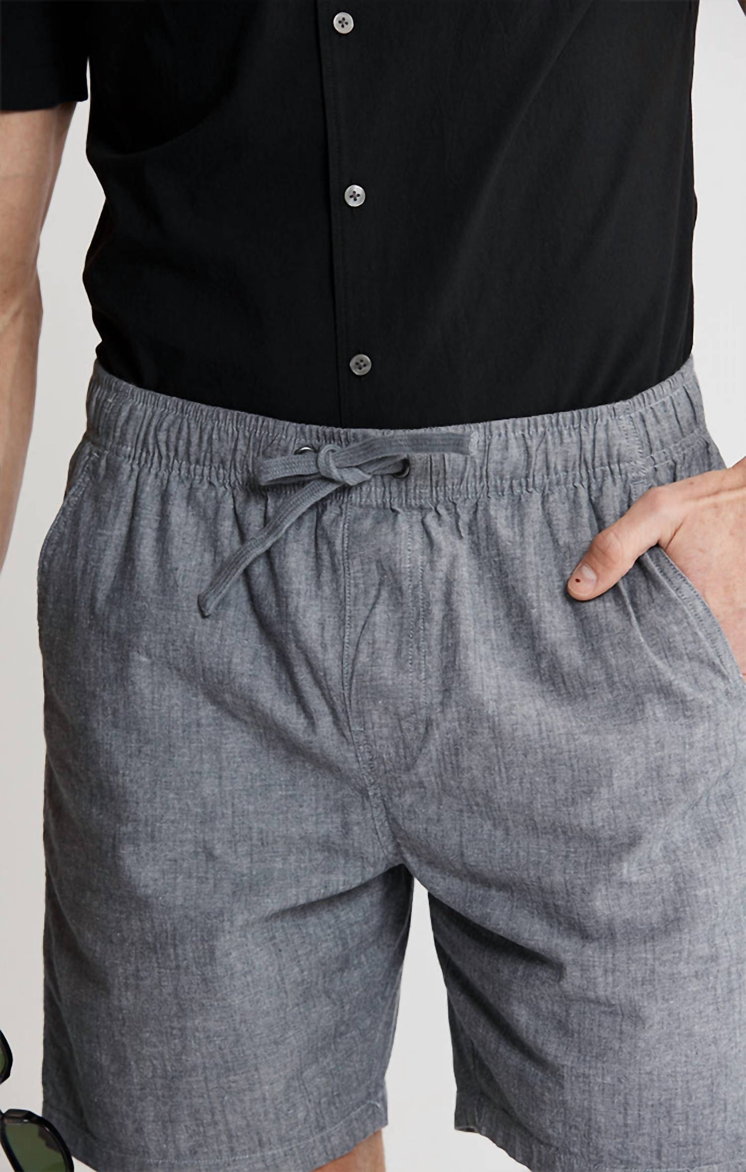 Elevate your summer wardrobe with the Chambray Pull On Short by JACHS NEW YORK, a perfect blend of style and comfort. These shorts feature a classic fit with a 7" inseam, an elastic waistband, and a practical drawstring closure for effortless wear. The textured design is crafted from a stretch chambray blend consisting of 96% cotton and 4% spandex, ensuring comfort and ease of movement. With two side pockets and one back pocket, these imported shorts are ideal for vacation and embody the Y2k trend.