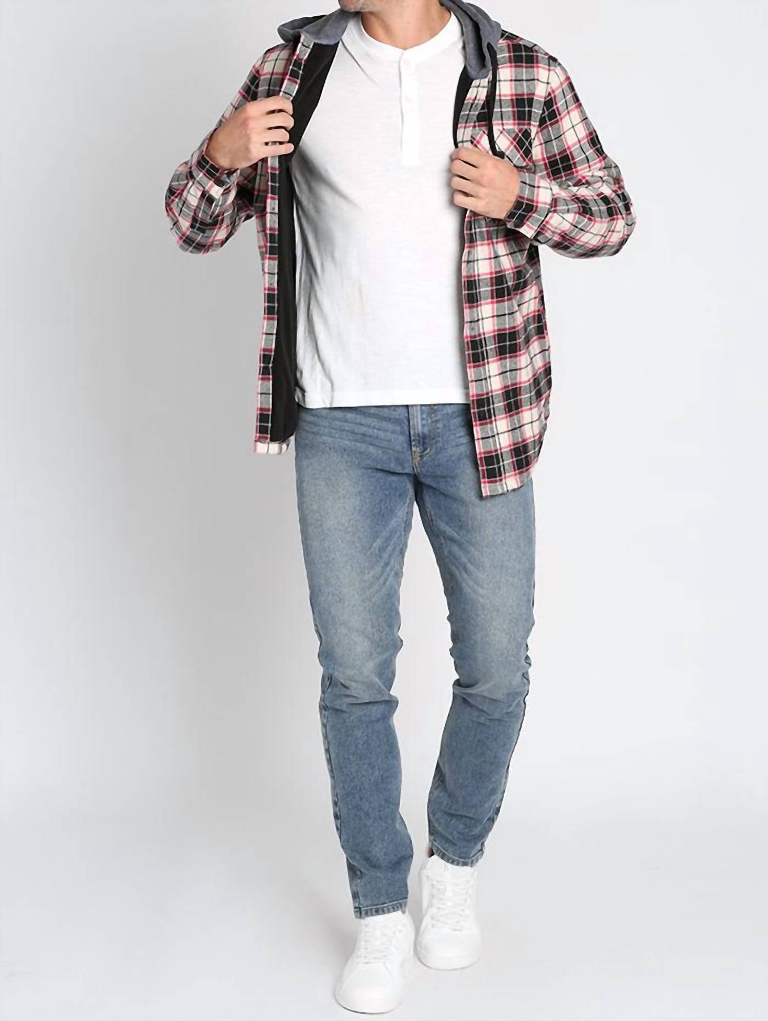 Elevate your fall wardrobe with the Flannel Hooded Shirt Jacket from JACHS NEW YORK, an ideal blend of style and comfort. This men's jacket is crafted from 100% cotton, featuring a classic fit and long sleeves. It boasts a convenient button closure and an attached hood for a casual, preppy look. Although imported, specific care instructions are unavailable, ensuring easy wear for all your traveling or Thanksgiving occasions.