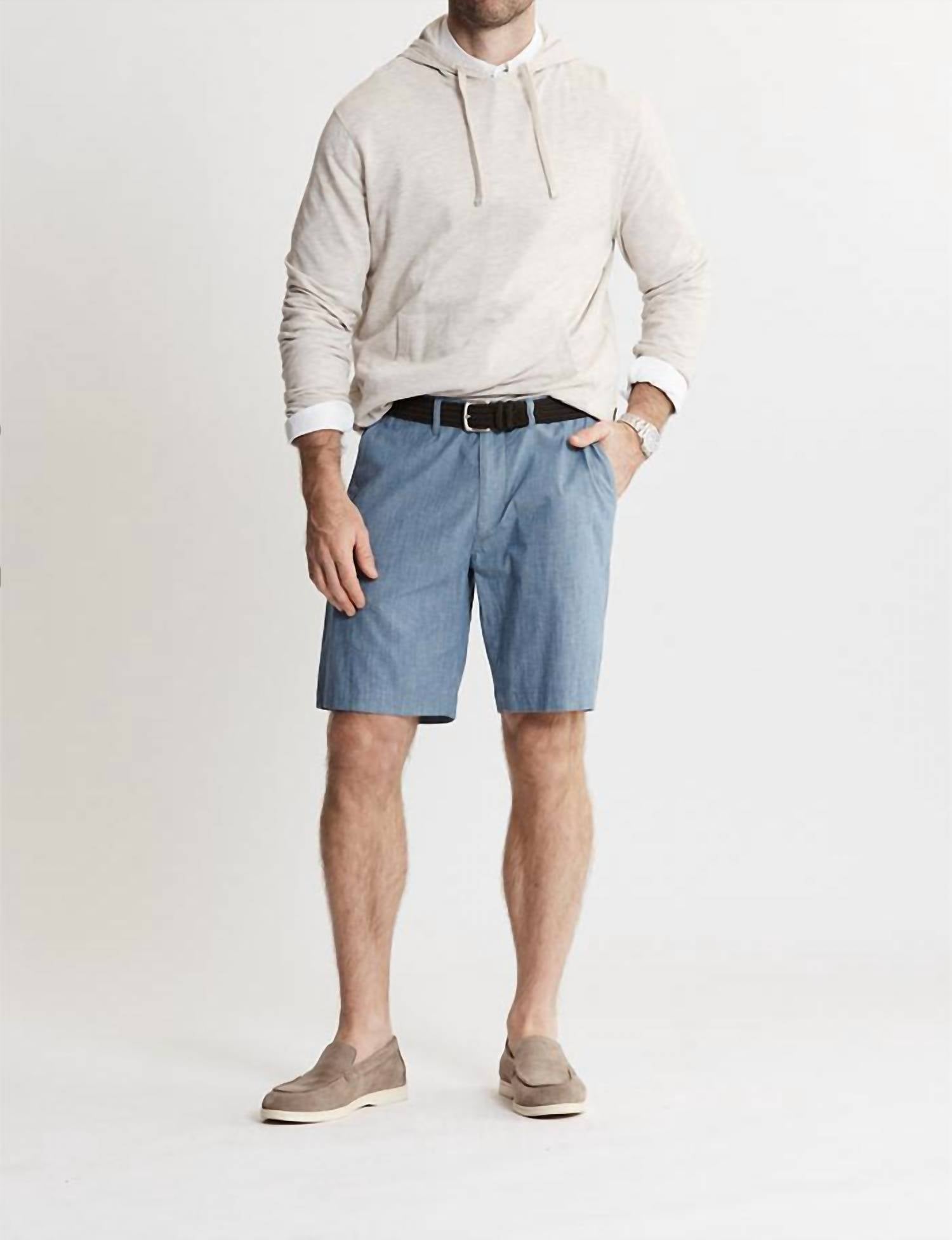 Embrace effortless style with the Stretch Chambray Short by JACHS NEW YORK, crafted in a breathable 98% cotton and 2% spandex blend. Designed in a soothing hue, this piece features a 9-inch inseam and a comfortable Bleecker Fit perfect for summer adventures. It comes with a button closure and practical pockets, making it an ideal choice for vacations or casual outings. This textured hybrid essential is imported and aligns with a preppy trend, perfectly suited for your seasonal wardrobe.