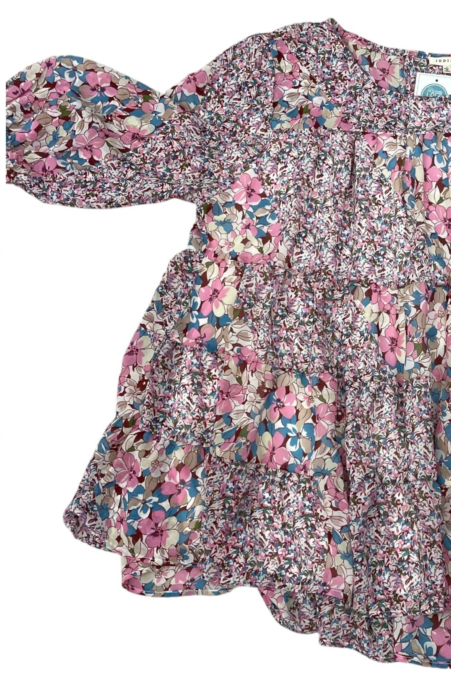 Pair this with your favorite jeans and slides for your next girls night out. Introducing the Women's Print Bubble Sleeve Top by Jodifl, an elegant choice featuring a lively pink floral pattern. This blouse is crafted from 100% polyester and showcases a feminine crewneck with bubble sleeves. Enjoy the convenience of a pull-on design, making it an effortless add to your wardrobe. Care for this piece by hand washing and line drying to maintain its vibrant look.