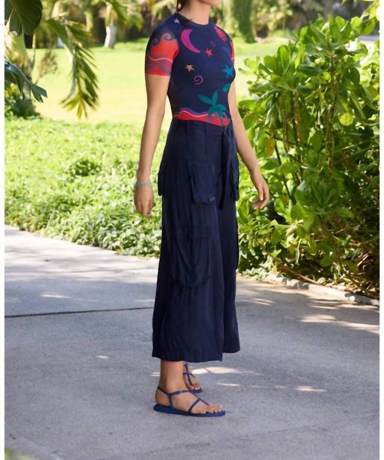 Upgrade your wardrobe with these cropped pants, designed to merge sophistication and wearability. The tailored fit ensures ultimate comfort during long days or nights out. The Hailey Cargo Pants are crafted from lightweight, breathable fabric. They are designed to be equally stylish and comfortable. Featuring a self-tie at the waist and patch pockets at the front and back, these pants offer large cargo pockets on the leg and are finished with a wide leg line. Pair them with a relaxed-fit camp shirt and fashion sneakers for a weekend look with elevated style. Runs Small, recommend sizing up. Model Height: 5'10" Machine Wash
