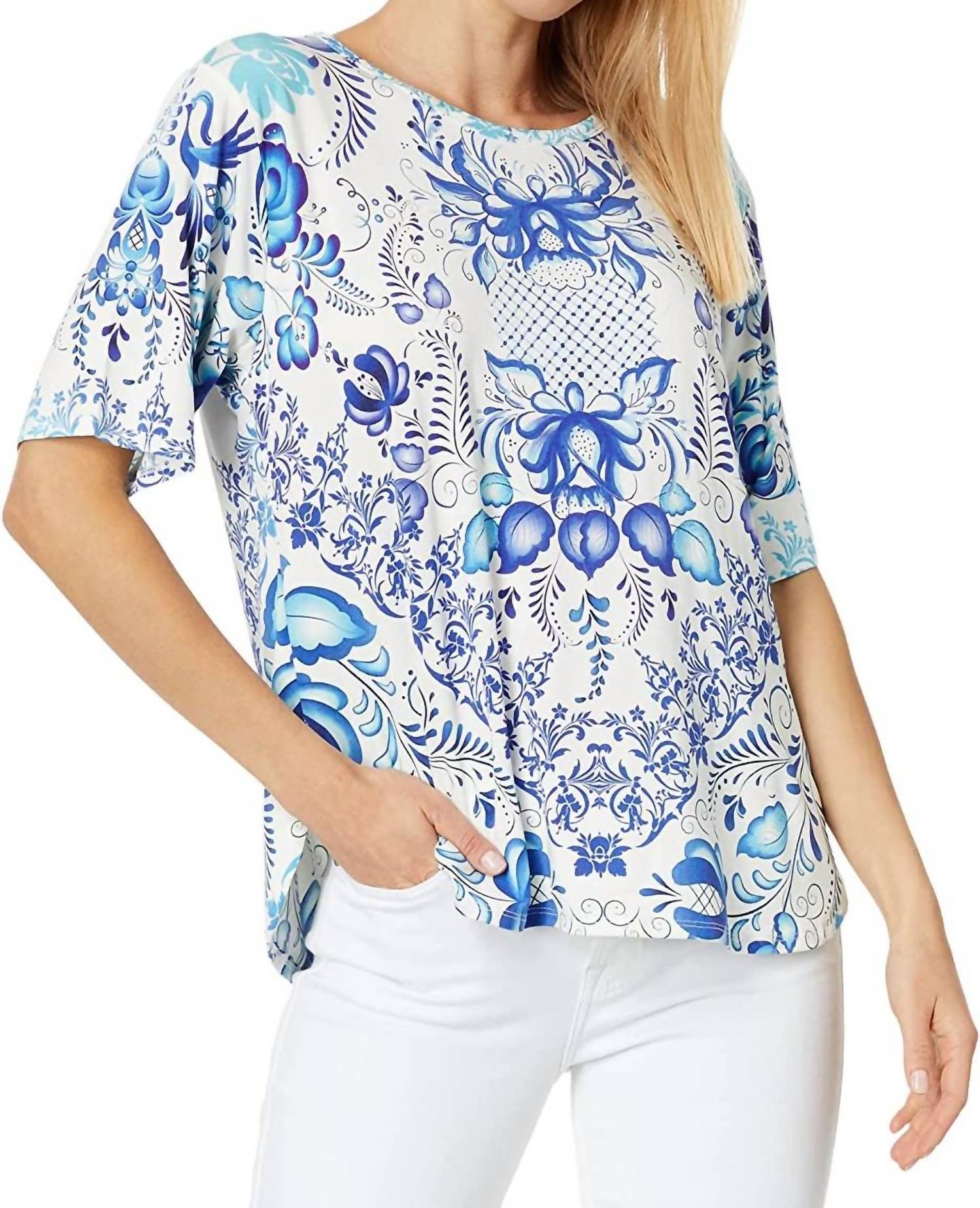95% Rayon Made of Bamboo 5% Spandex. Short sleeve. Round neck. Relaxed fit. Pull on closure. Machine washable.