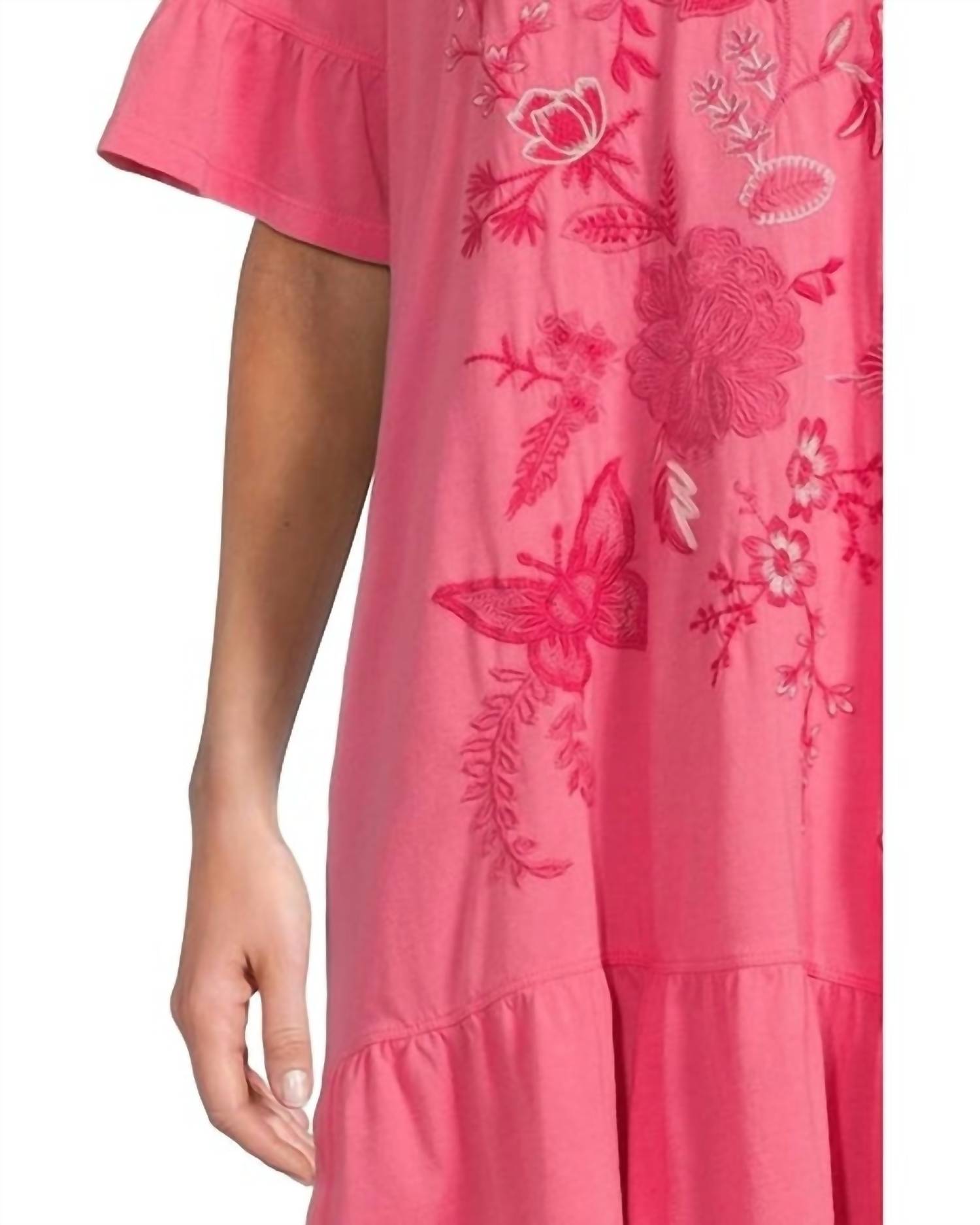 Pair with your favorite sandals for an effortlessly chic look. This classic, comfortable dress is ideal for any casual occasion. It features tonal floral embroidery, adding subtle texture and charm. Its relaxed fit, flouncy ruffle hem, and soft bell sleeves create a playful, flattering silhouette and is easy to wear. It’s perfect for warm-weather outings, brunch dates, or adding a cheerful splash of color to your day. Machine Wash