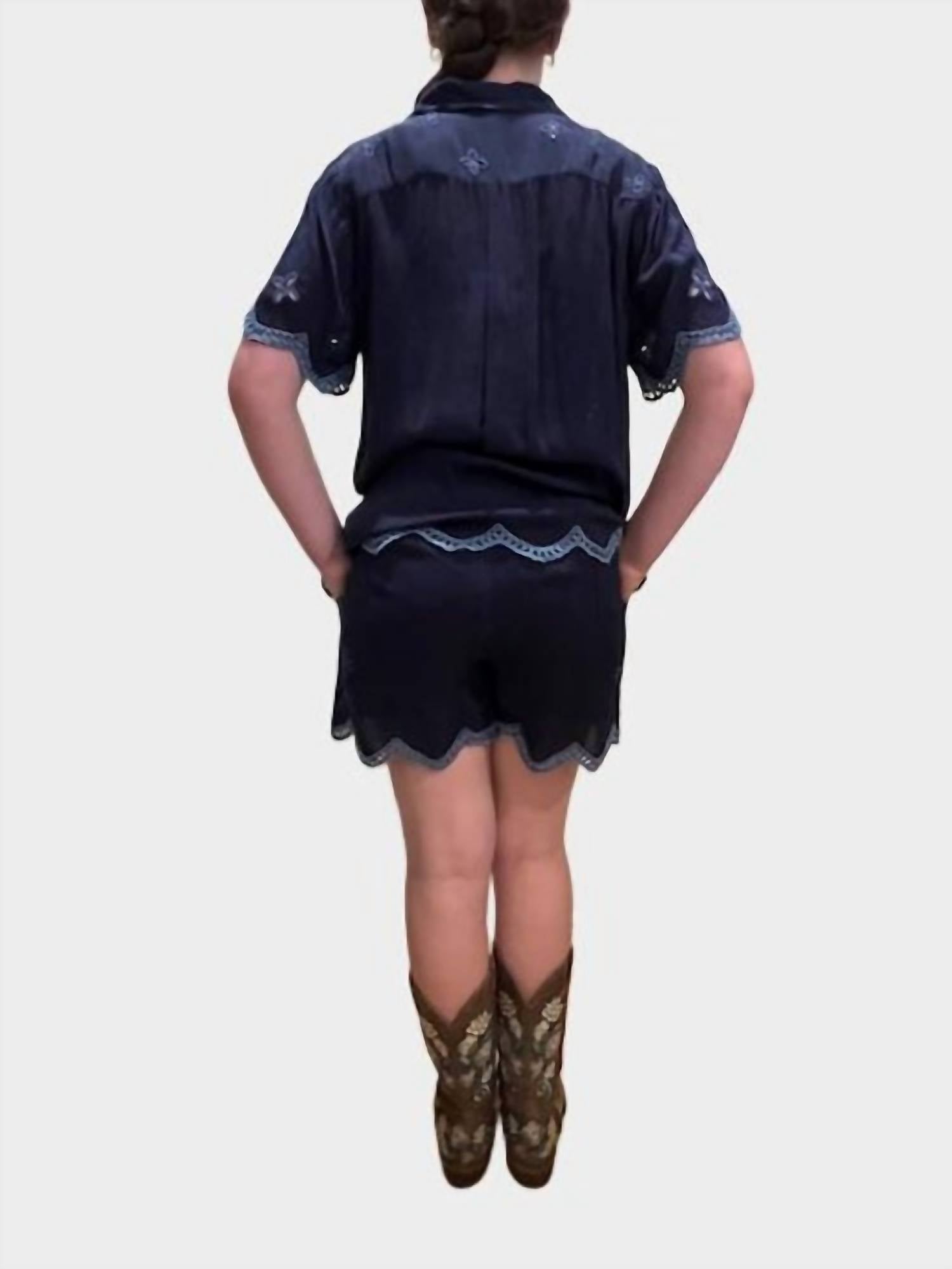 The go-anywhere and do-anything skort that you'll love to live in. Crafted from a lightweight fabric, the 'Tempest Shorts in Santi' from Johnny Was are embellished with contrasting embroidery at the hem and at the pockets. Featuring slip pockets at the hips and lined throughout, pair with the 'Chryssie Camp Shirt in Santi' and beaded sandals for a resort-inspired look. The Model is 5'4" and wearing a size Small. Machine Wash