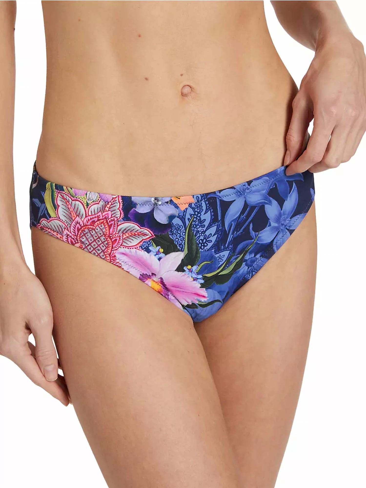 This Johnny Was Neon Jungle Hipster Bikini Bottom features a low-rise cut and eye-catching floral print. Made from 83% polyamide and 17% elastane, it offers superior fit and stretch. Model is 5'10" and is wearing a US size Small.
