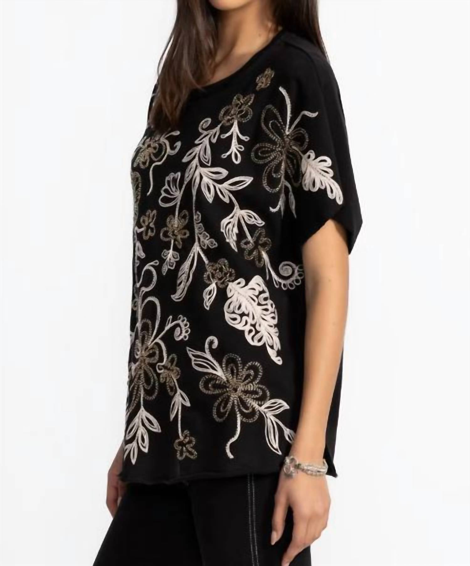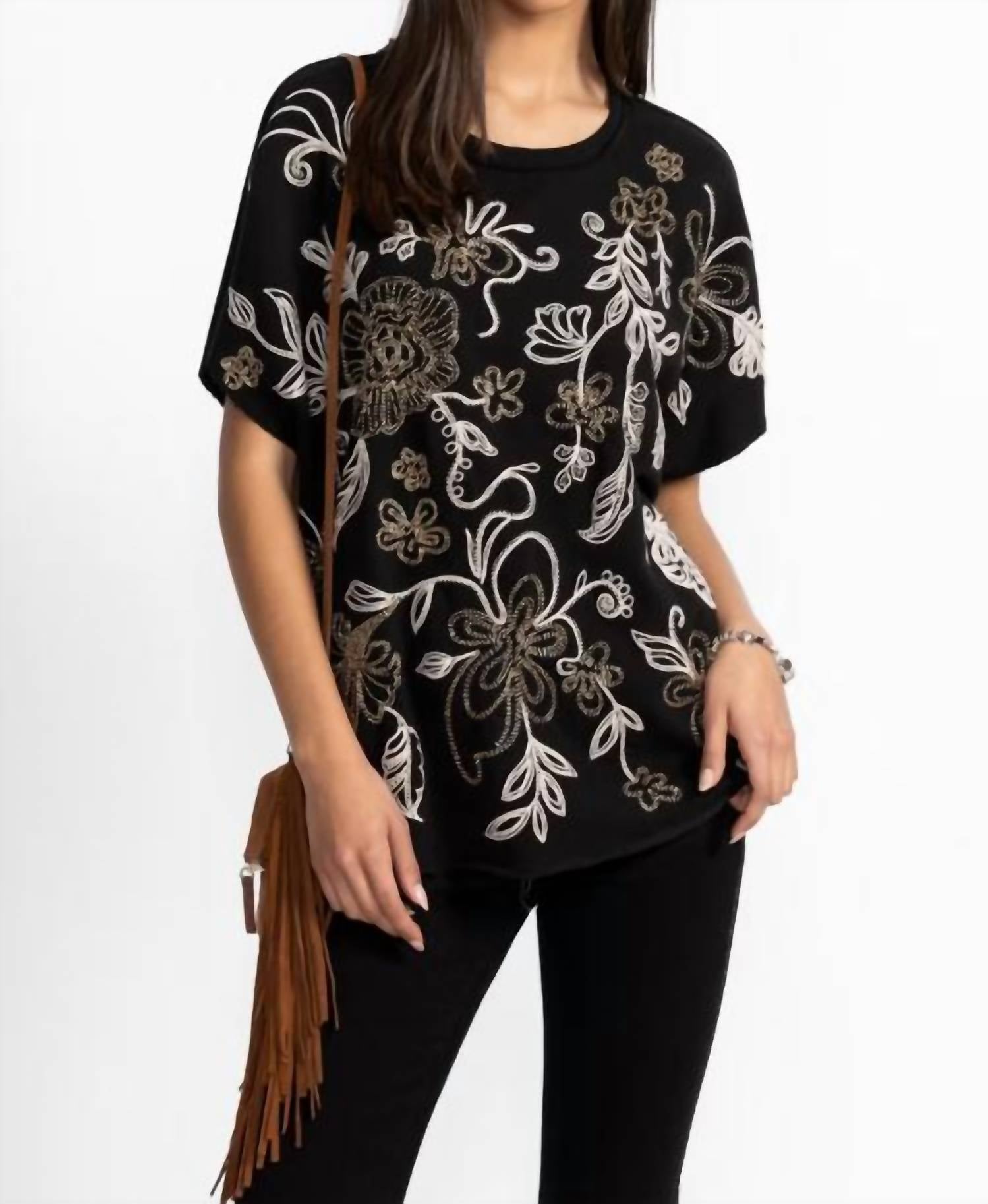 Made from 100% breathable cotton, this French terry poncho combines comfort with intricate placement embroidery for a stylish statement. It features a crew neckline, elbow-length dolman sleeves, and a relaxed fit that drapes effortlessly. The curved hemline adds a modern touch, making it perfect for layering over a tank and pairing with shorts for a laid-back, resort-ready outfit.