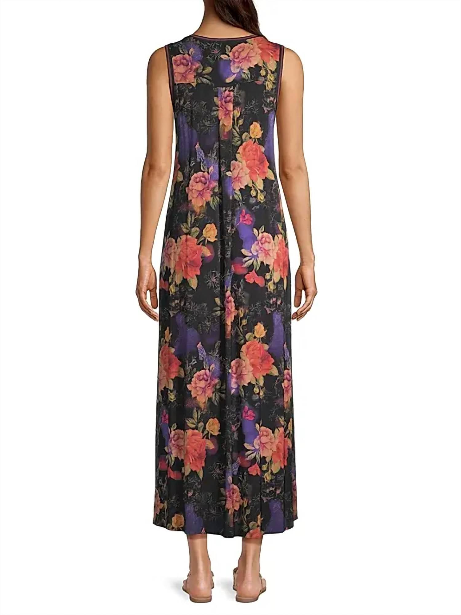 A maxi dress that is just as cute as it is comfortable. Celebrate in style with the Johnny Was Bossa Nova V-Neck Maxi Dress, a stunning piece perfect for beach days and summer festivities. Designed in a boho chic A-line silhouette, this sleeveless dress features a delightful multi-color floral pattern, ideal for capturing attention. Crafted from luxurious Rayon, it offers both sophistication and comfort, complete with convenient pockets. Care instructions include machine wash and tumble dry for effortless maintenance.