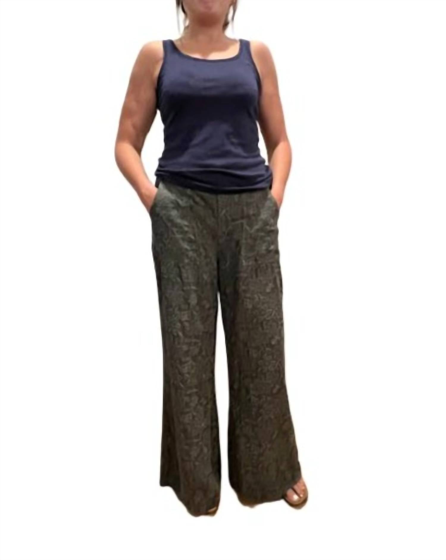 The Nena Palazzo is a wide-leg palazzo pant, a perfect blend of bohemian elegance and flowing comfort. Designed with a relaxed silhouette and loose, drapey legs, these pants offer a fluid drape and breathable feel, ensuring effortless comfort alongside visual flair. The model is 5'10" and wearing a size Medium.