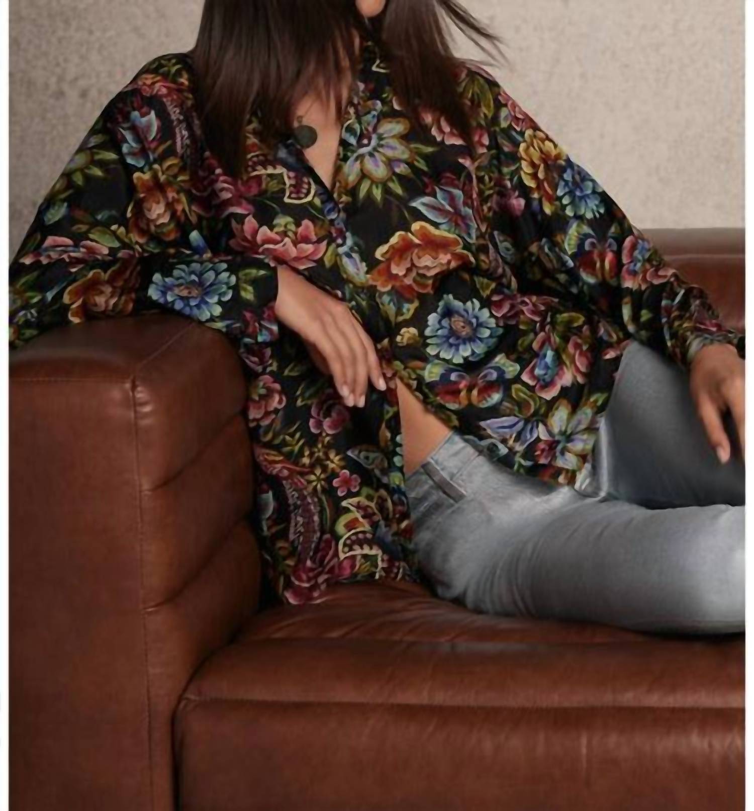 Pair this with your favorite jeans and slides for your next girls night out. The Audrey Oversized Blouse features a beautiful floral bouquet pattern from 100% luxurious silk. It features a soft V-neckline and a button-front design, complemented by roll-tab sleeves, for a customizable look. This vibrant blouse pairs well with linen shorts or jeans with fashionable sneakers for a stylish day of sightseeing. The model is 5'9" and wearing a size Small Measurements for size Medium: Bust - 52", Front Length - 27"