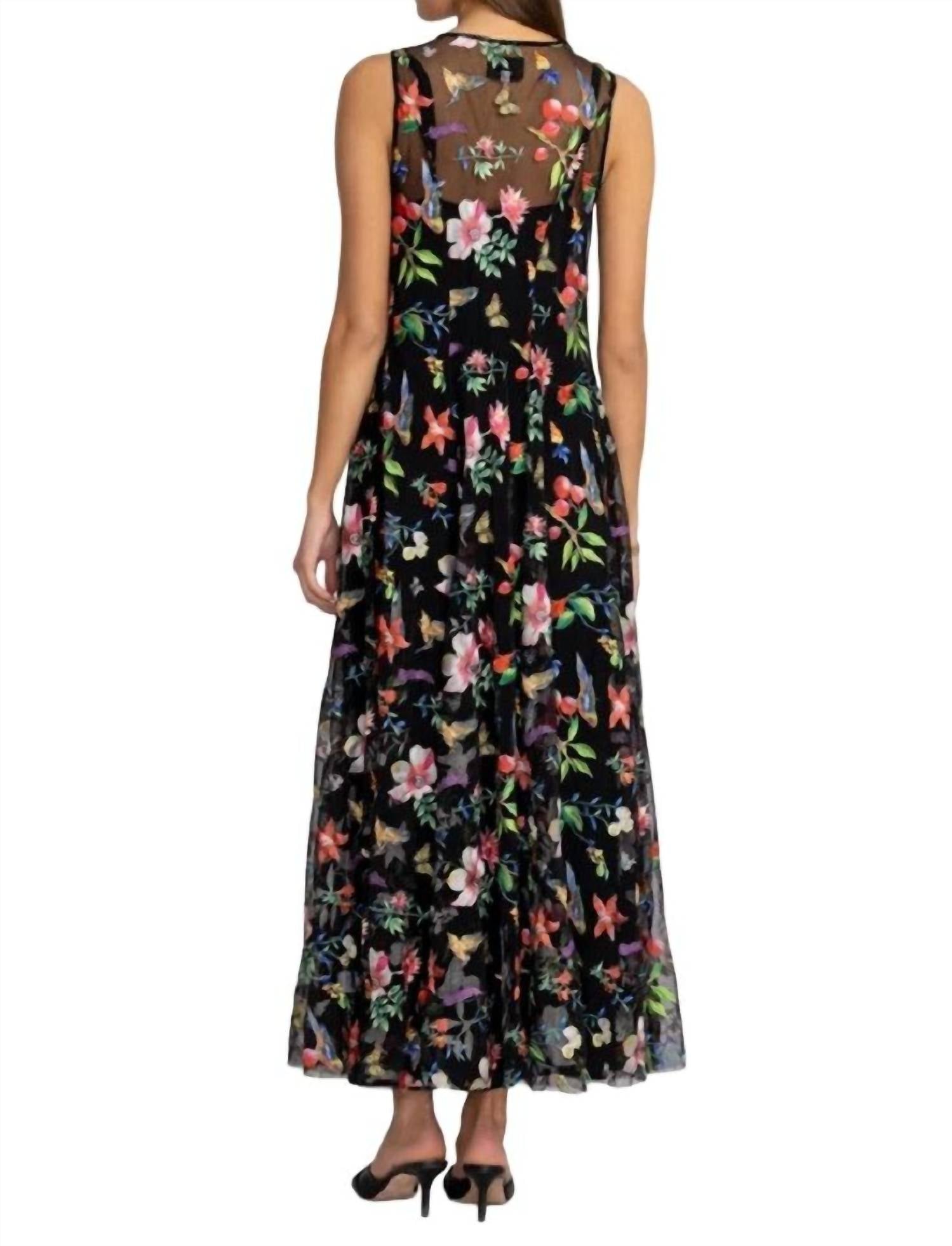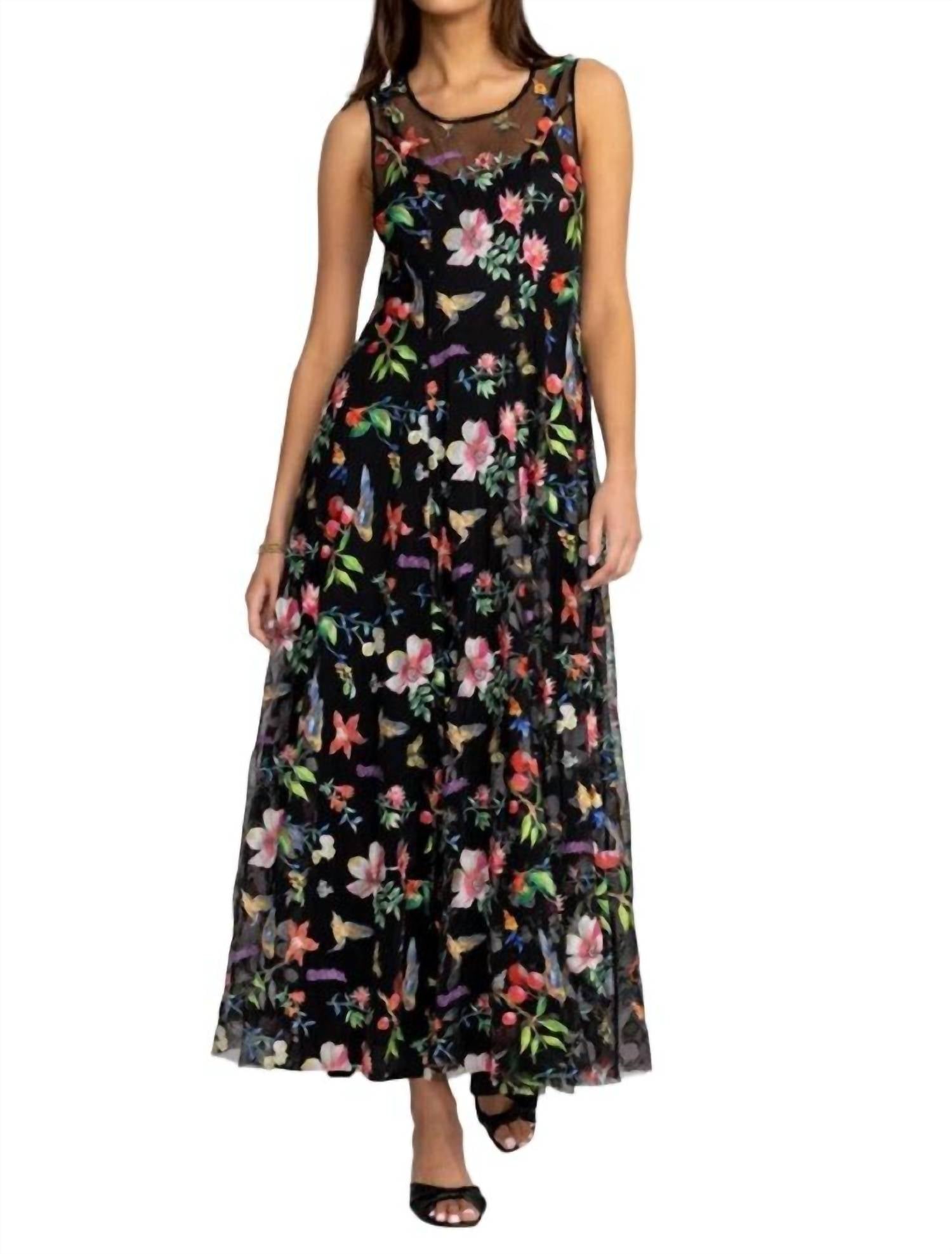Casual, comfortable and cute! The dress that you'll be reaching for all season long. Embrace summer elegance with the Johnny Was Emilda Mesh Dress, a sleeveless masterpiece adorned with romantic floral blooms set against a multi-colored backdrop. Crafted from 100% polyester, this casual dress features a round neck and a flared hem, delivering a contemporary take on classic style. Closure: Pull-on style ensures ease of wear. Care: Dry clean only. Perfect for evening events or Mother's Day celebrations, this dress is a boho chic delight for any occasion.
