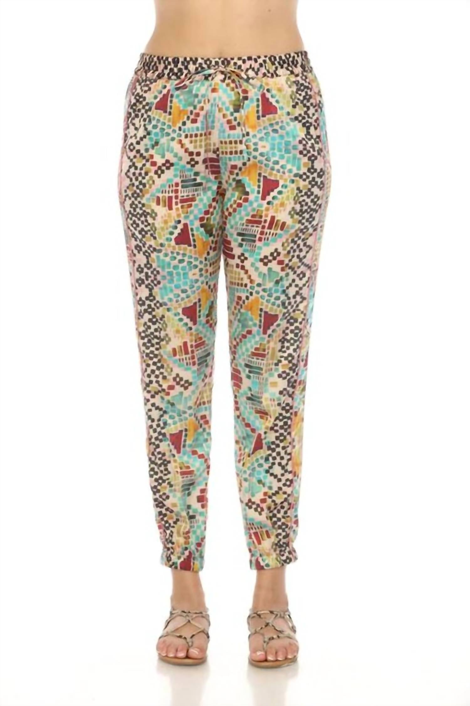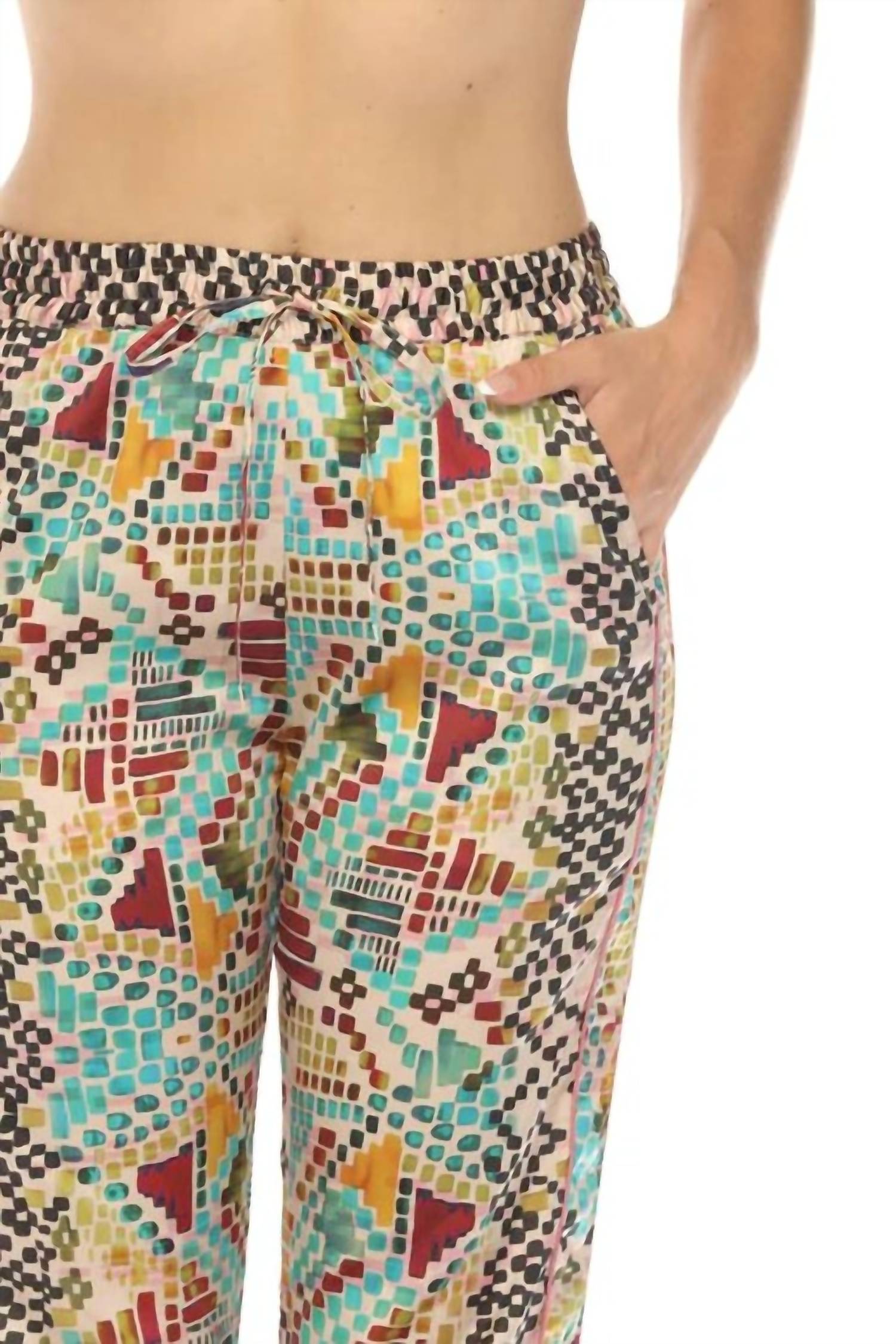 The perfect pant for running around town and looking cool while doing it. Introducing the Genora Paneled Silk-Blend Jogger Pant, a stylish and comfortable addition to your loungewear collection. With an eclectic, boho vibe and a vintage flair, this pant features a drawstring waist, two front pockets, and a relaxed jogger fit. Made from a luxurious silk-blend fabric, they are perfect for lounging at home or running errands in style. Hand Wash