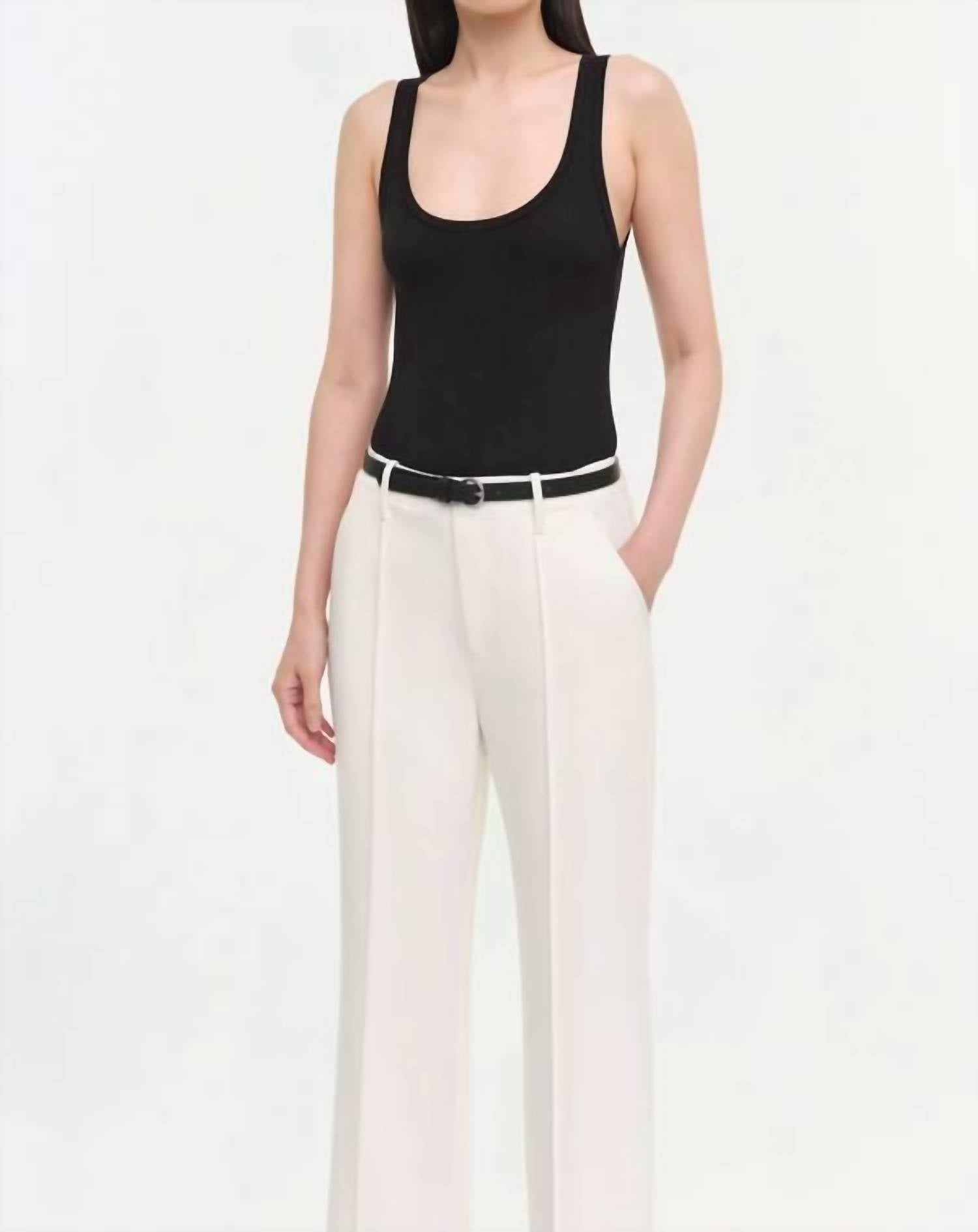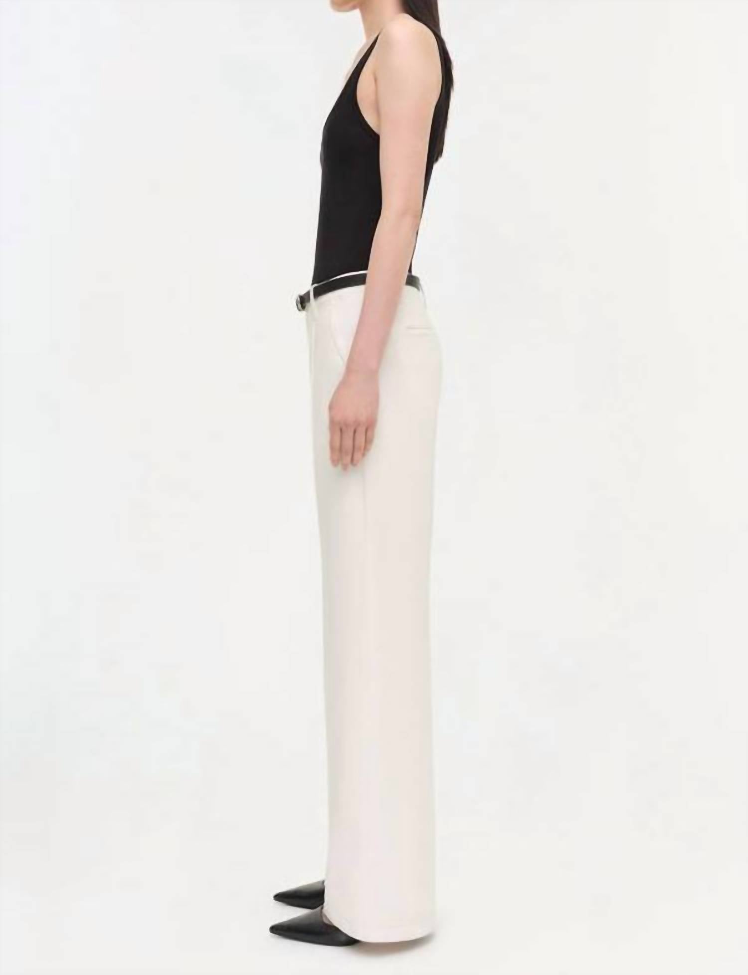 Offers a sleek and timeless design in elegant ivory, tailored with a streamlined silhouette for an understated look. Crafted with a shell composition of 55% Acetate and 45% Polyester. Feature a classic zip closure and high-rise fit. Straight leg design includes practical pockets for added functionality. For optimal care, dry clean only.