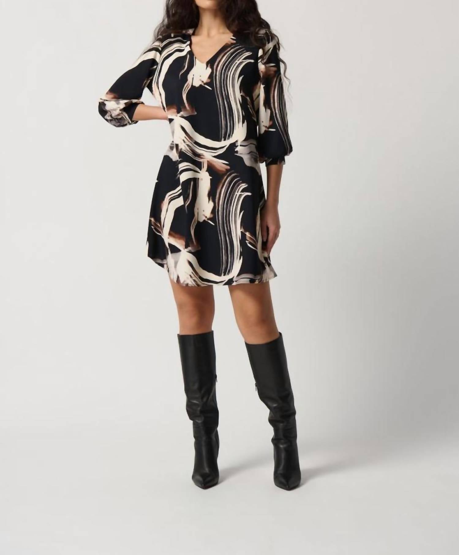 Joseph Ribkoff - Brushstroke Print 3/4 Sleeve Mini Shift Dress
