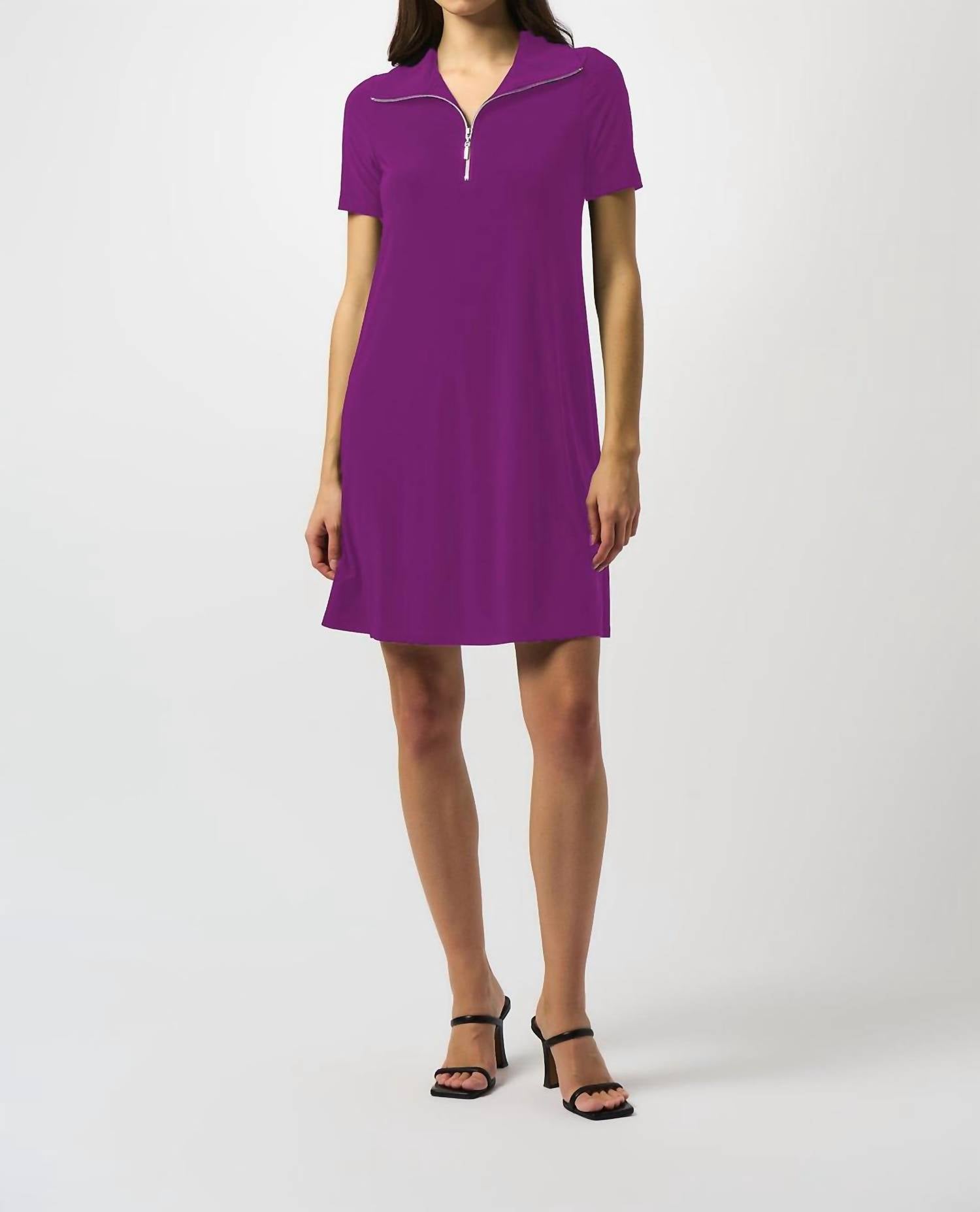 Joseph Ribkoff - Joseph Ribkoff Zipped Collar Trapeze Dress Style 251145