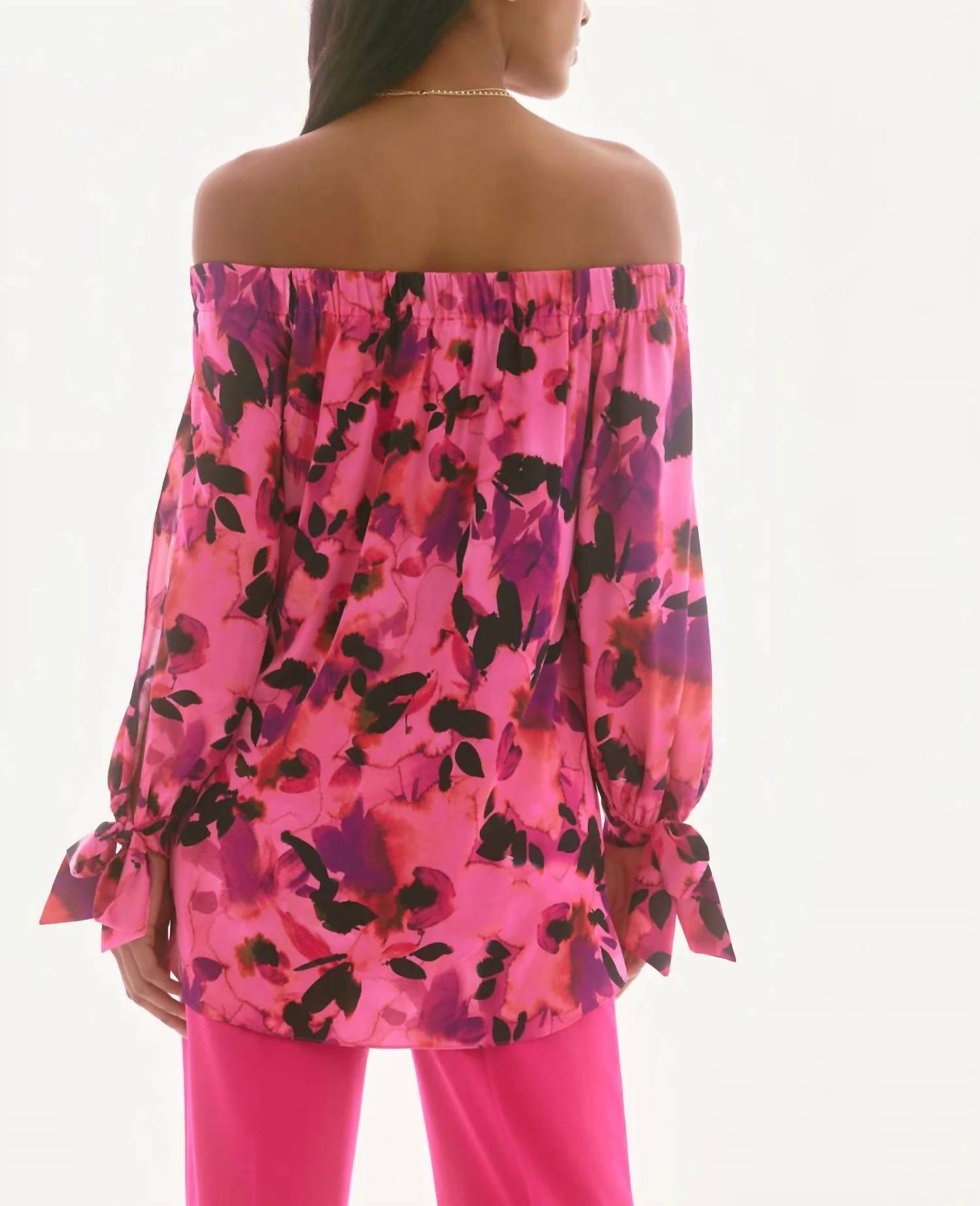 Joseph Ribkoff - Floral Print Satin Off-shoulder Boxy Top