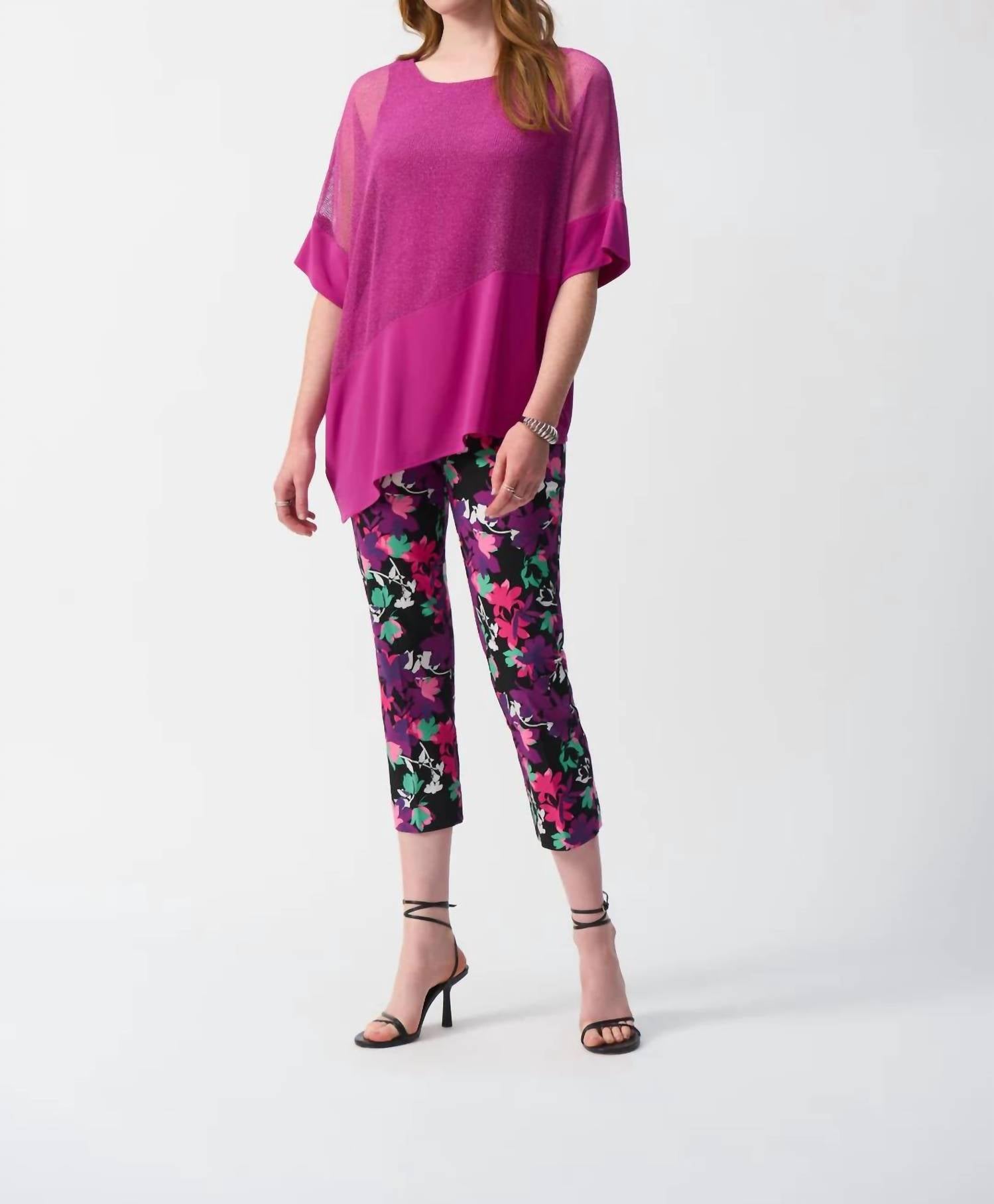 Joseph Ribkoff - Mesh Asymmetrical Short Dolman Sleeve Top