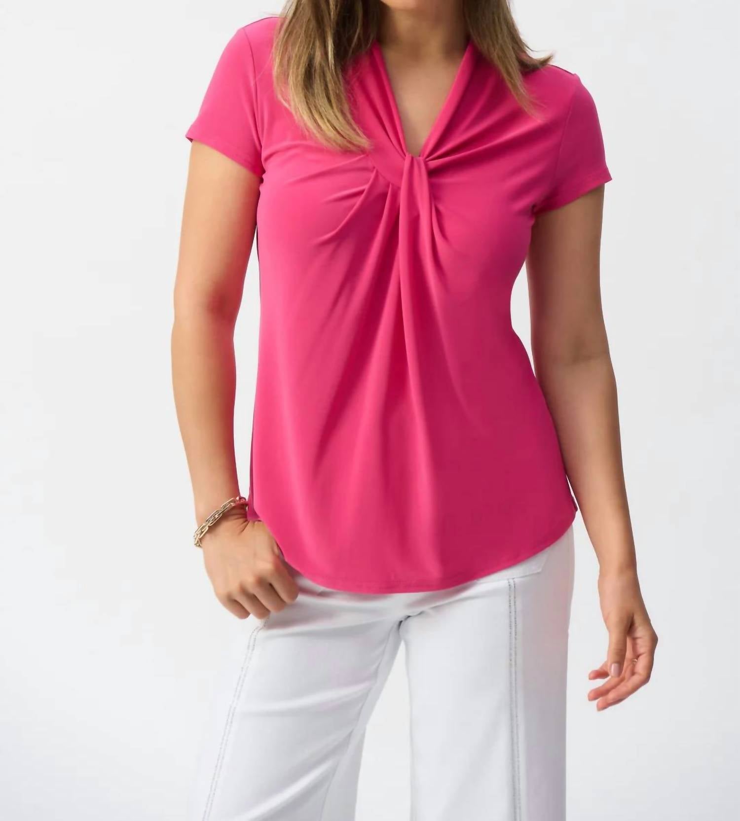 Joseph Ribkoff - Draped V-neckline Short Sleeve Top
