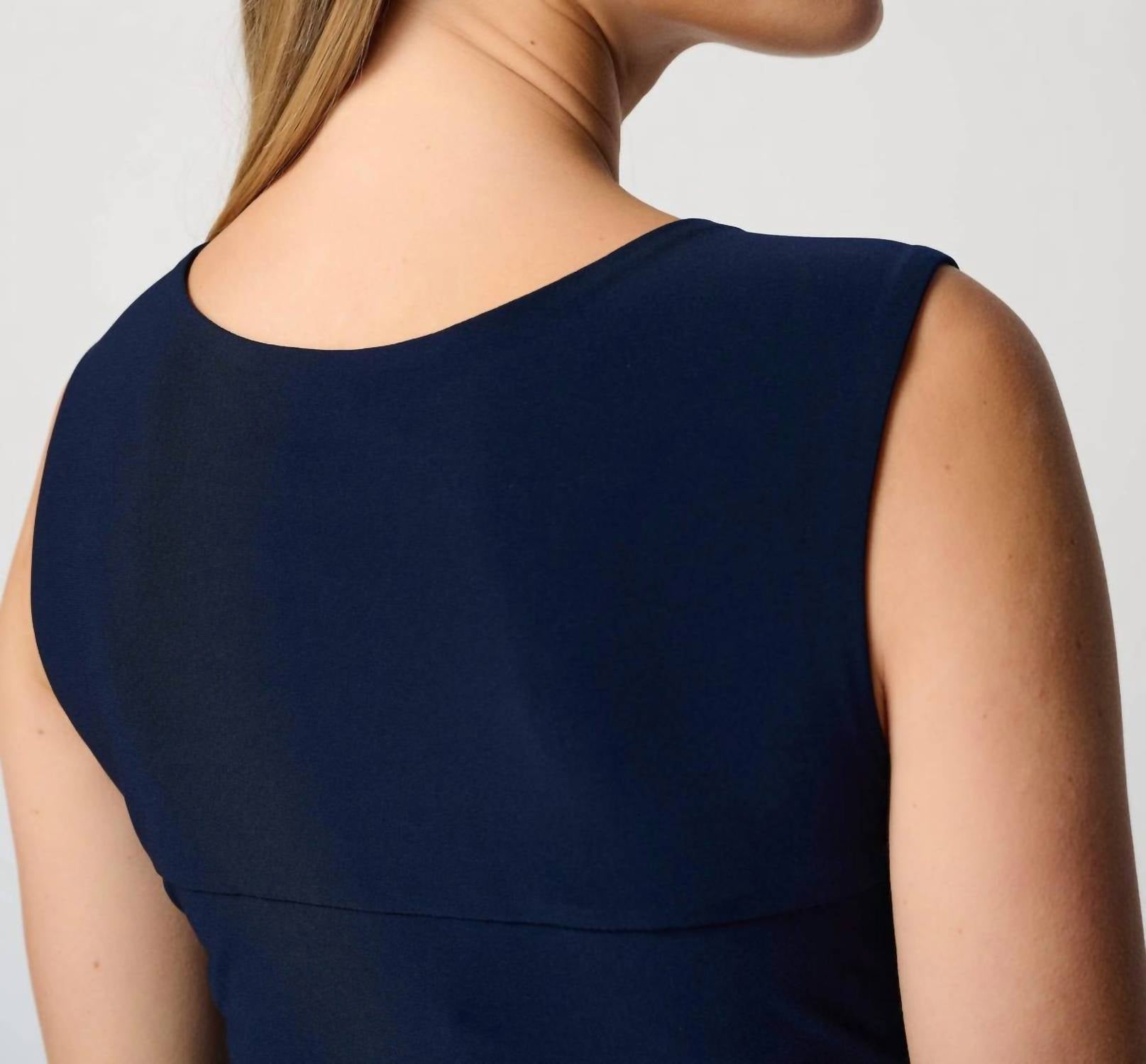Perfect for layering or cute enough to wear it on its own. Elevate your summer wardrobe with the Joseph Ribkoff Square Neck Camisole in a striking Midnight Blue hue. Designed for women who appreciate streetwear trends, this sleeveless top offers a chic square neckline perfect for music festivals. The solid-colored camisole ensures easy styling and boasts a convenient pull-on closure. Crafted from 96% Polyester, 4% Spandex for effortless care, it requires hand washing and line drying.