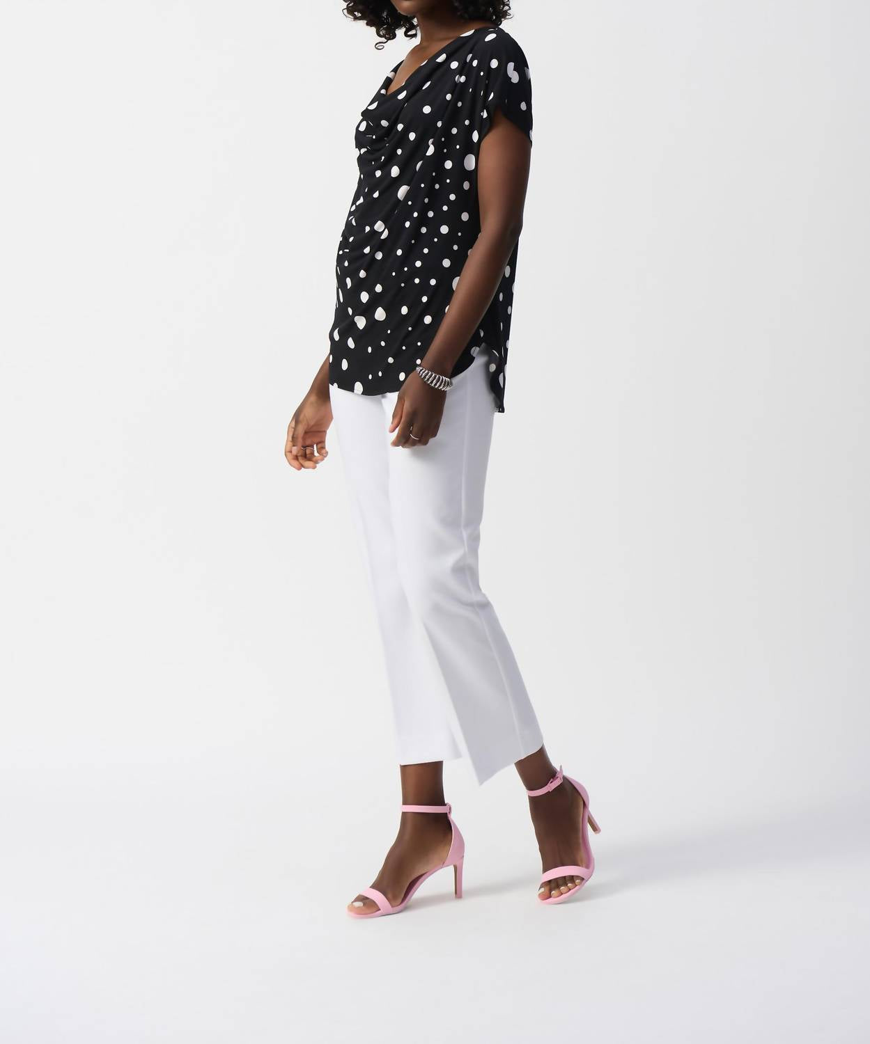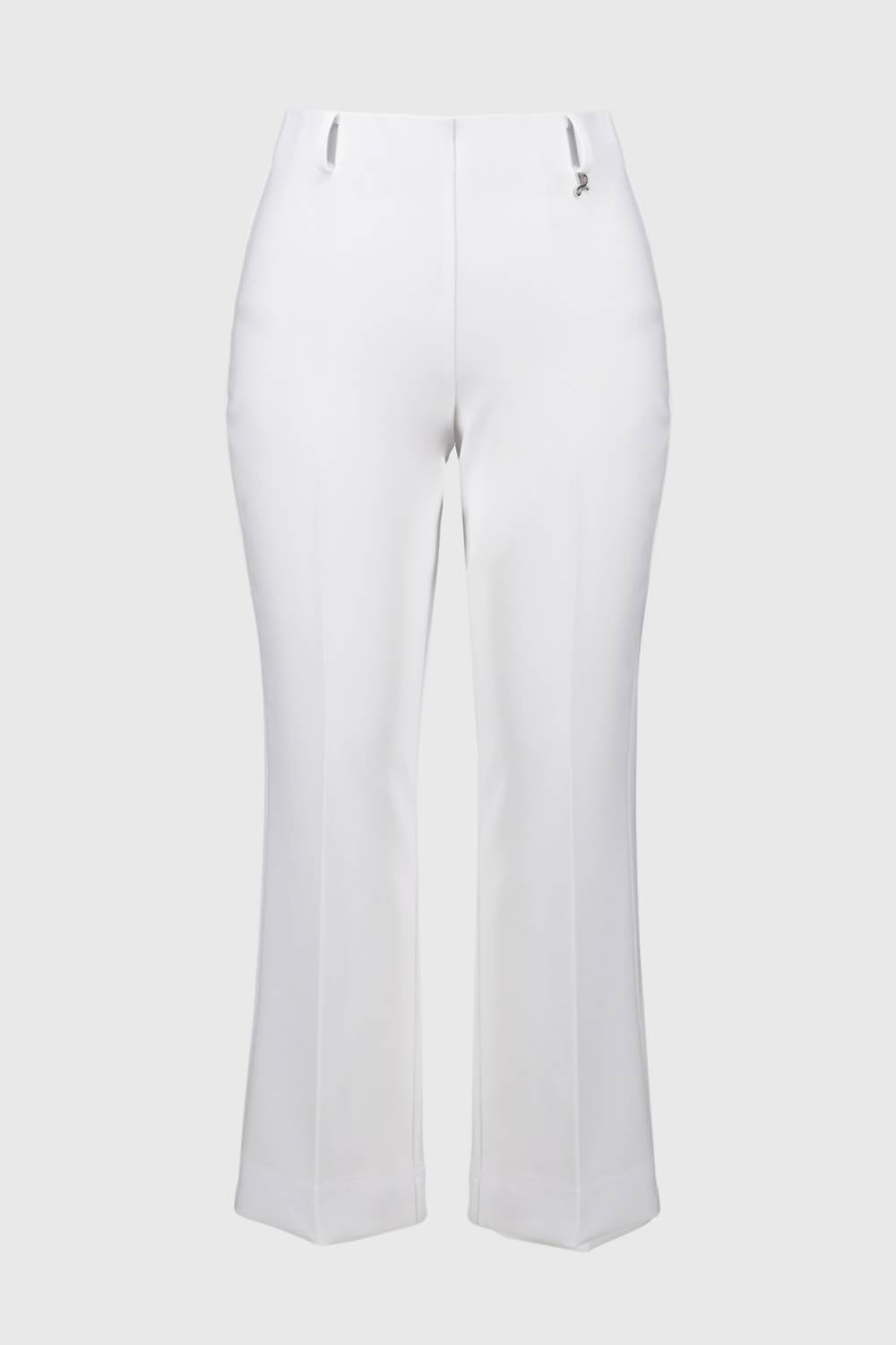 Enhance your wardrobe with this trendy cropped number, designed to blend style and practicality. The comfortable fit allows for easy all-day wear. The perfect length to pair with your favorite mules. Discover the perfect blend of sophistication and comfort with these Joseph Ribkoff straight leg trousers (251067). Designed with a mid-rise waist and cropped length cut, these belted trousers offer a sleek, minimalist style ideal for formal and office settings. Featuring a plain pattern, they embody business elegance, ensuring you look polished and professional throughout your day.95% Polyester, 5% SpandexBack pocketsNo zipperUnlinedStraightOur model is 5'9"/175 cm and wears a size 6.Approximate inseam length (size 12): 27" - 69 cm