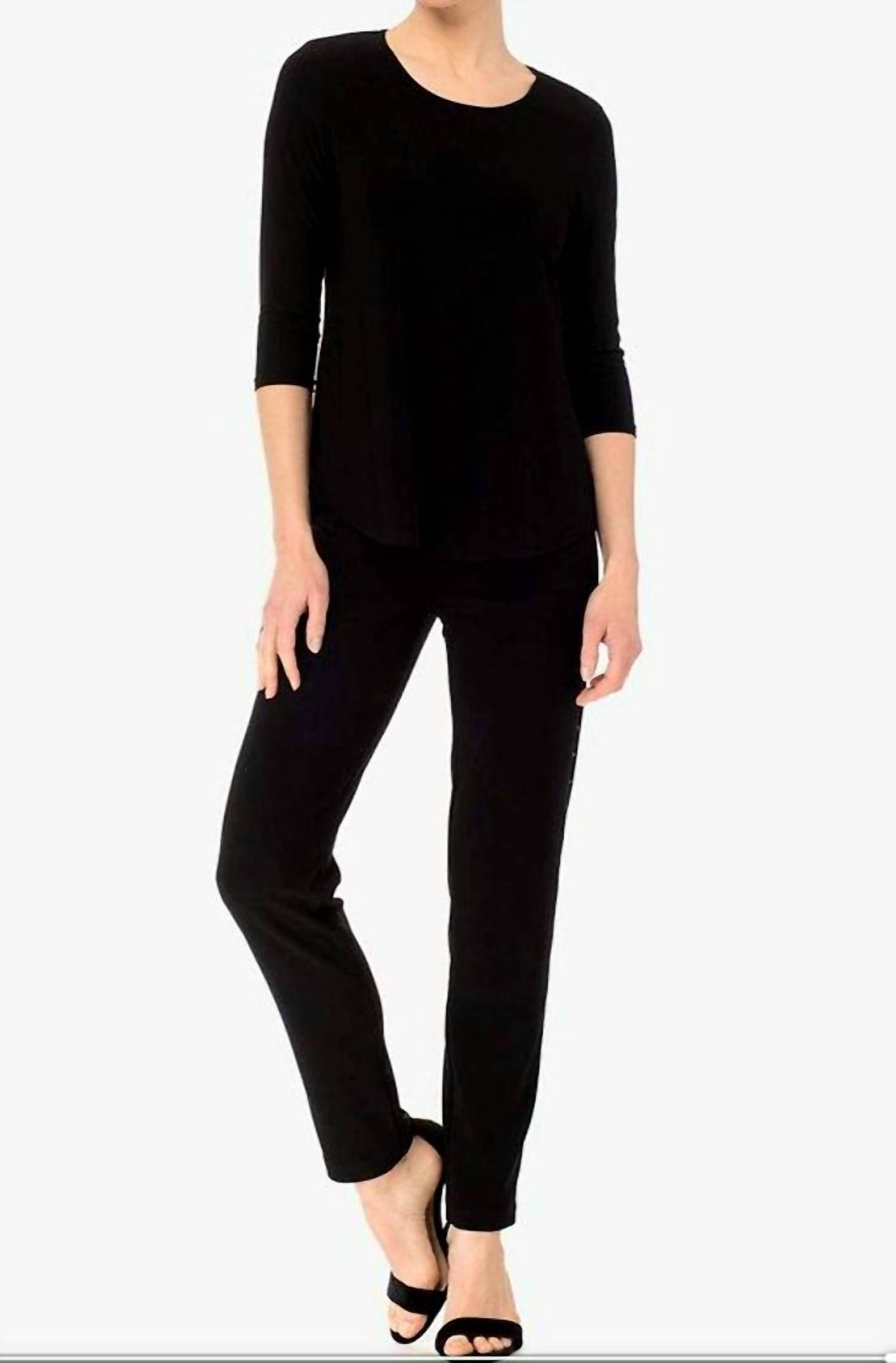 The perfect long sleeve tee that goes with just about anything. Discover the Joseph Ribkoff Women's Long Sleeve Neck Top, an elegant choice for your vacation wardrobe. Crafted with a solid black pattern, this tee features a sophisticated boatneck and convenient three-quarter sleeves with functional pockets. Made for a monochrome look, this pull-on style is perfect for the spring season. Please refer to the garment label for detailed care instructions.