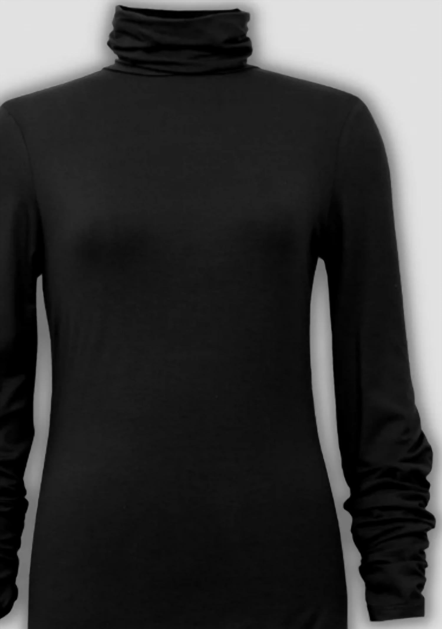 A classic staple that every closet needs. Elevate your holiday party ensemble with the Women's Turtleneck With Ruching At Sleeve by Joseph Ribkoff, a masterful blend of cozy and classy in sophisticated black. This long sleeve piece features elegant ruching at the sleeves, adding a unique flair to its timeless turtleneck design. Closure: Pull on. Perfect for creating a solid foundation in your autumn wardrobe.