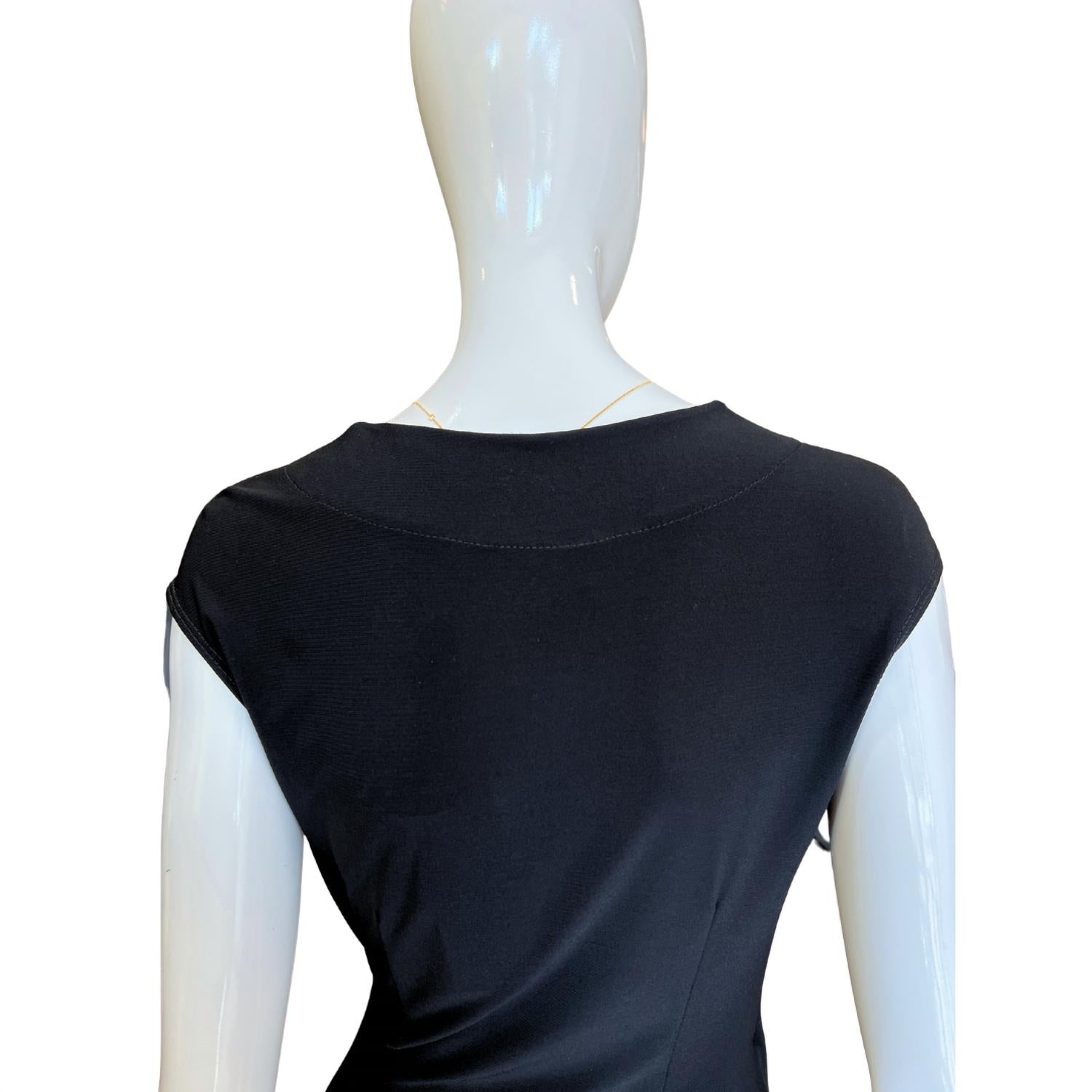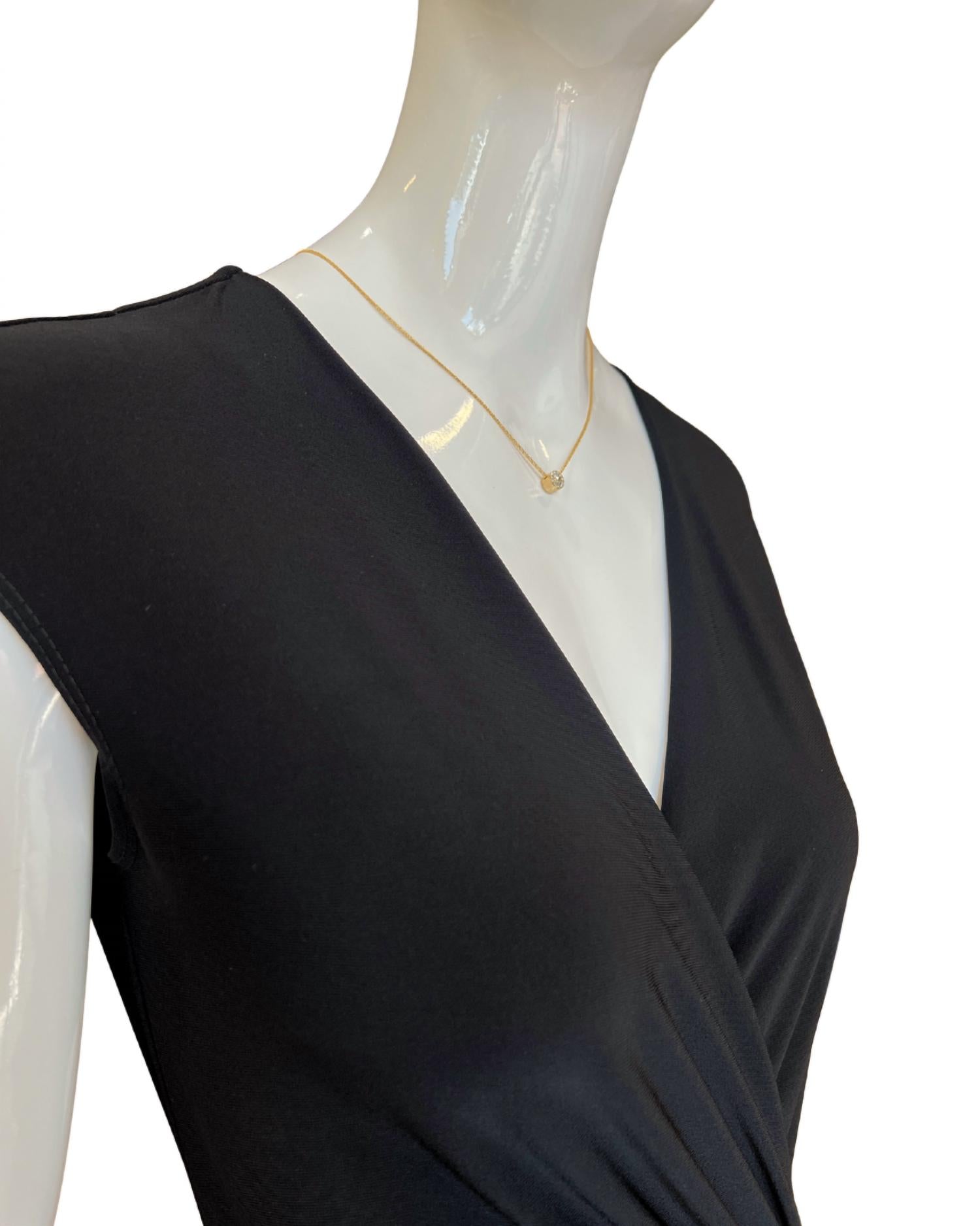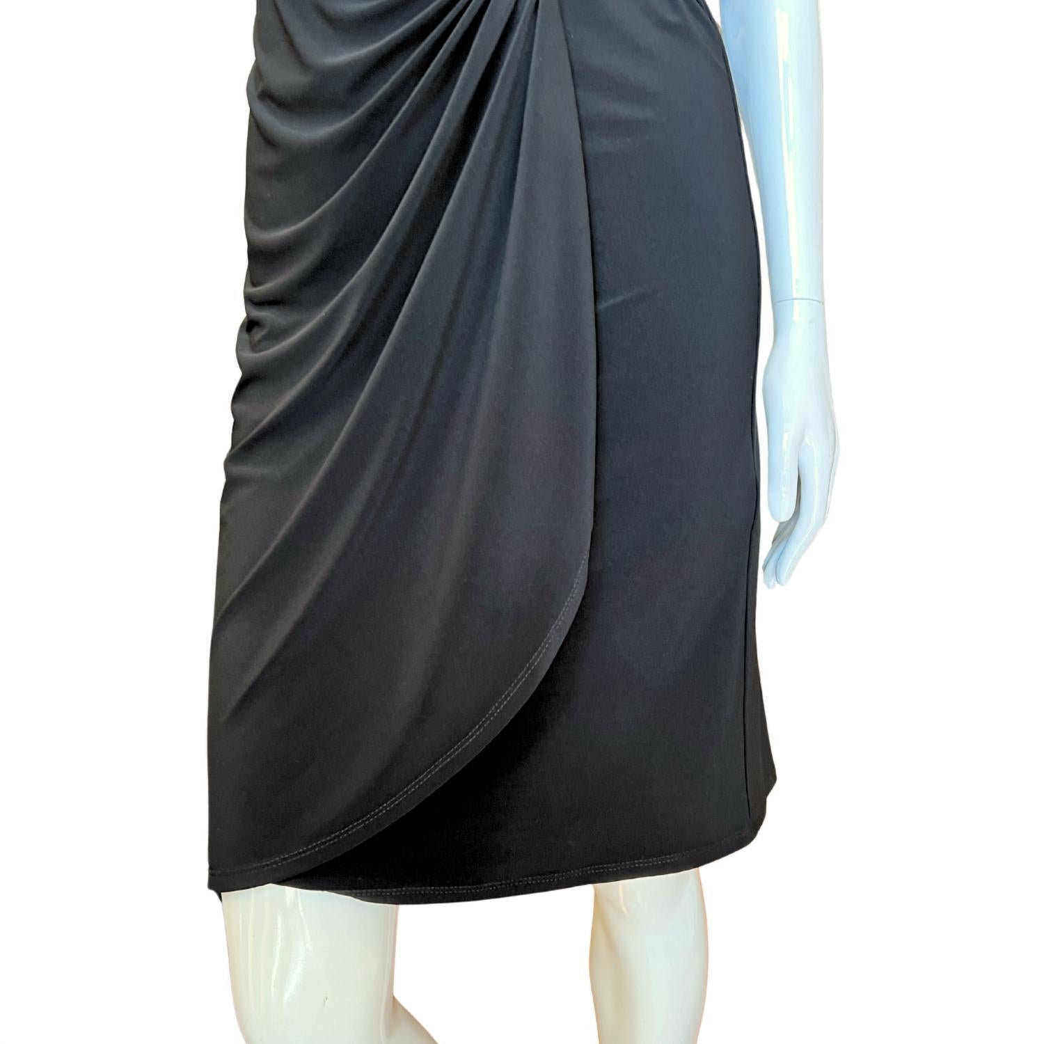 Casual, comfortable and cute! The dress that you'll be reaching for all season long. Embrace sophistication with the Women's Wrap Dress by Joseph Ribkoff, a staple for any wardrobe. This sleeveless design comes in an elegant black and features a V-neckline with a wrap silhouette, highlighted by a circular cinching detail to sculpt the body. Made in a durable blend of 96% polyester and 4% spandex, this dress offers a comfortable fit without compromising on style. Care: Machine wash cold with like colors, tumble dry low or lay flat to dry, and iron on low heat if needed.