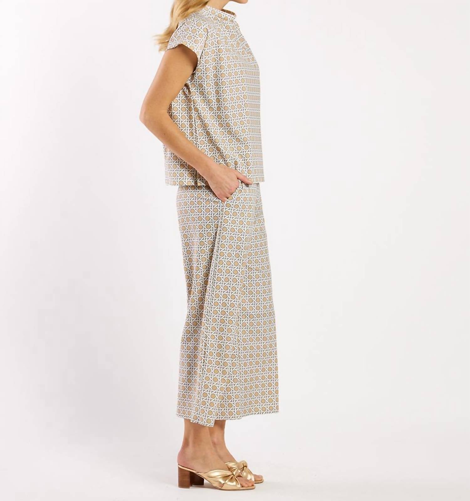 A timeless blouse that will never go out of style. Introducing the Tillie Short Sleeve Top by Jude Connally, the epitome of effortless style in fashionable Petite Rattan Sand. Crafted from nylon and spandex in the USA, this cowlneck patterned pullover top offers comfort and a chic silhouette. Measuring 23 3/8" from the top of the center back in size small, it’s perfect for a summer vacation or Mother’s Day celebration. Care for this maximalist piece with ease—just machine wash and cool iron if necessary.