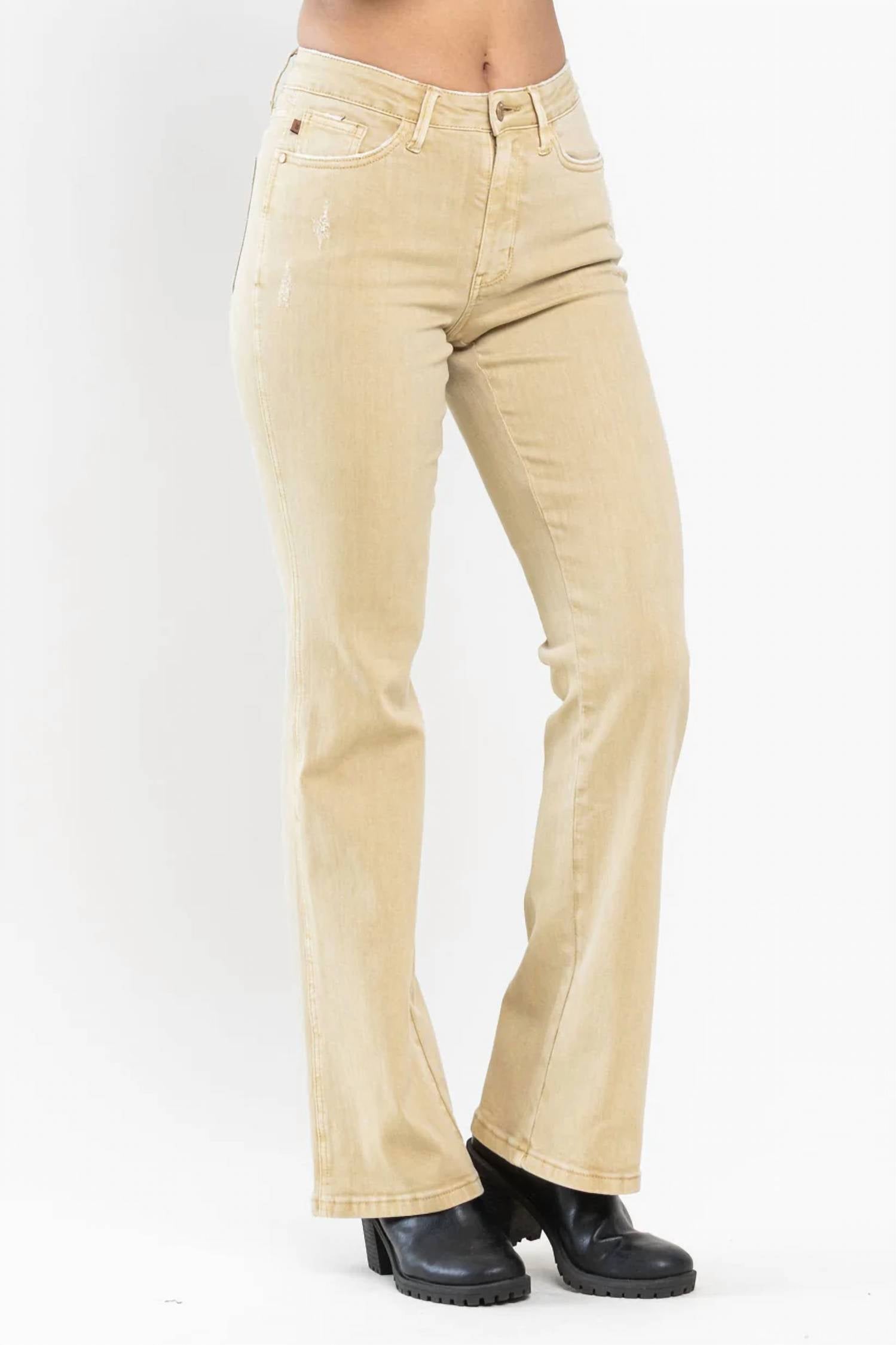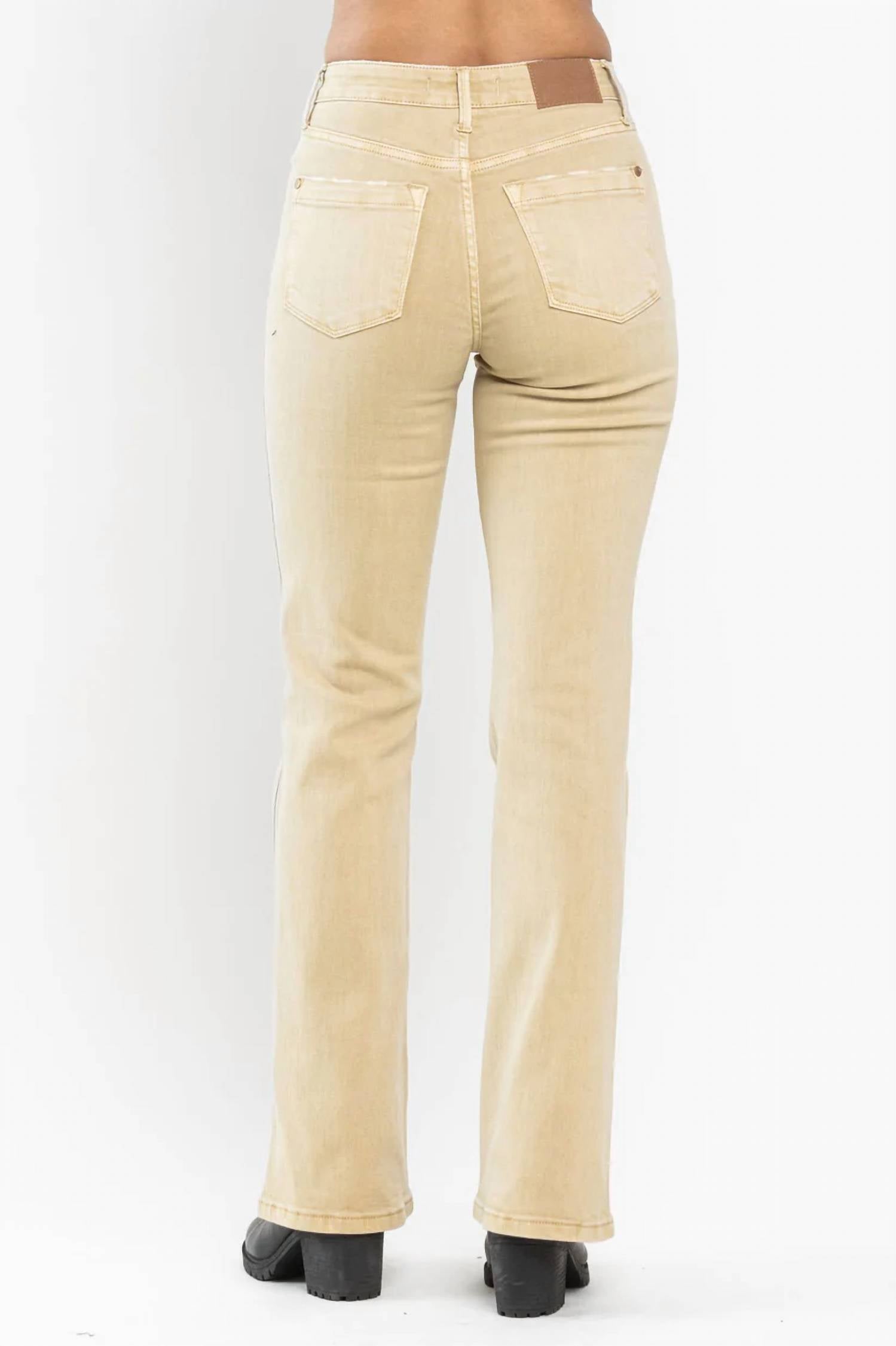 Just add boots! Upgrade your denim collection with the Judy Blue Mid-Rise Garment Dyed Slim Bootcut Jeans, available in chic khaki. Featuring a mid-rise fit with a 9.75" front rise and a slim bootcut leg with a 32" inseam, these jeans offer a contemporary take on a classic style. Crafted from a premium cotton blend (93% Cotton, 6% Polyester, 1% Spandex), they provide just the right amount of stretch for comfort. Enjoy the versatility of these jeans with a convenient button closure and functional pockets, perfect for pairing with any footwear choice.