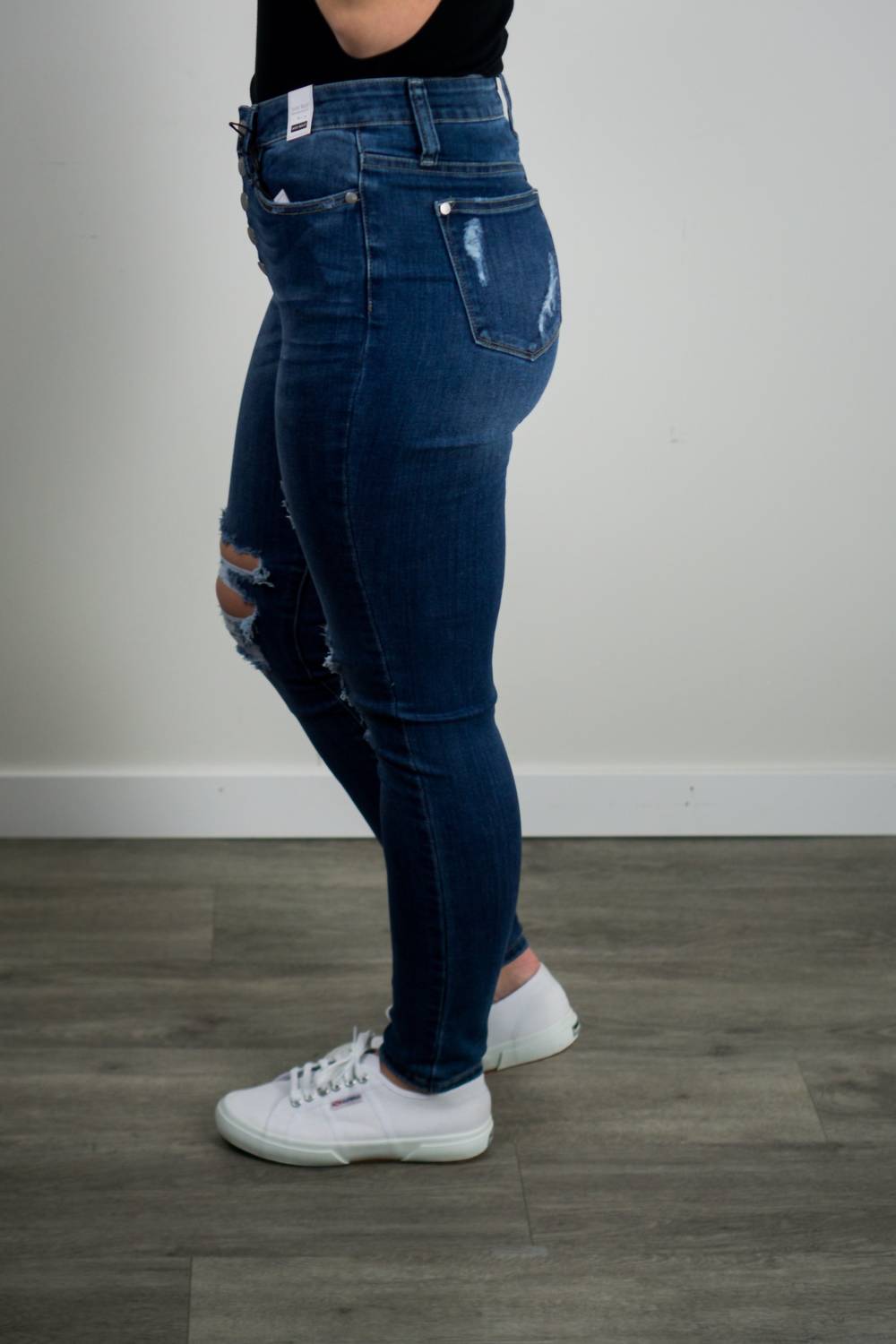 Judy Blue - Women's High Rise Button Fly Cuffed Skinny Jeans