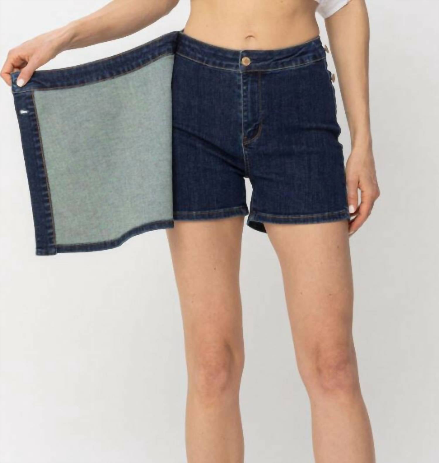 A skirt that you can do just about anything in? We love a good skort, especially this one! Introducing the Judy Blue High Waist Clean Denim Skort—a minimalist addition to your spring wardrobe, perfect for a dinner party. This dark wash skort is crafted from a cotton blend, composed of 92% Cotton, 6% Polyester, and 2% Spandex, ensuring comfort and flexibility. It features a button closure and practical pockets, with a front rise of 10 3/4" and an inseam of 3 3/4". Care instructions include machine wash and lay flat to dry, promising easy maintenance.