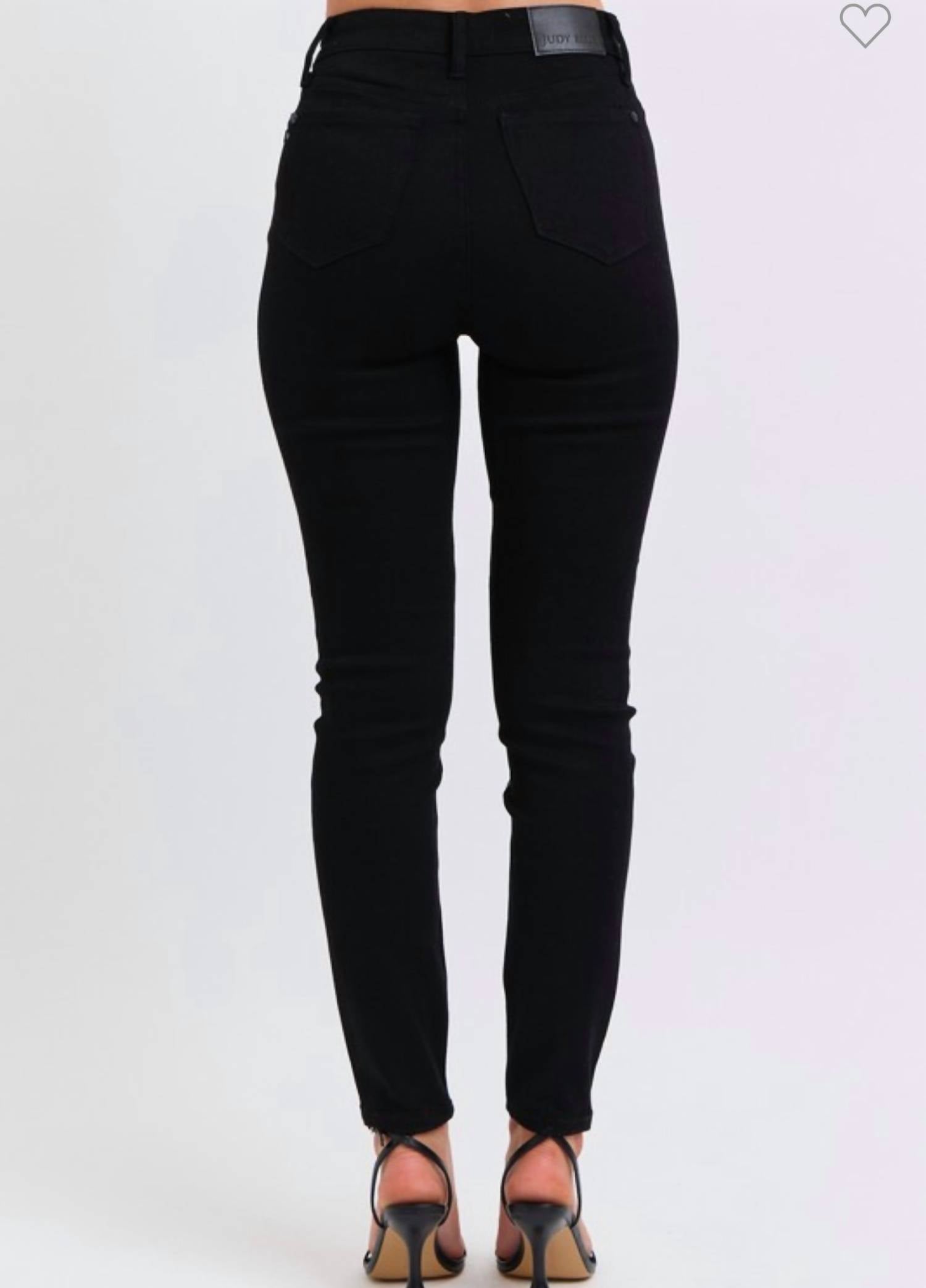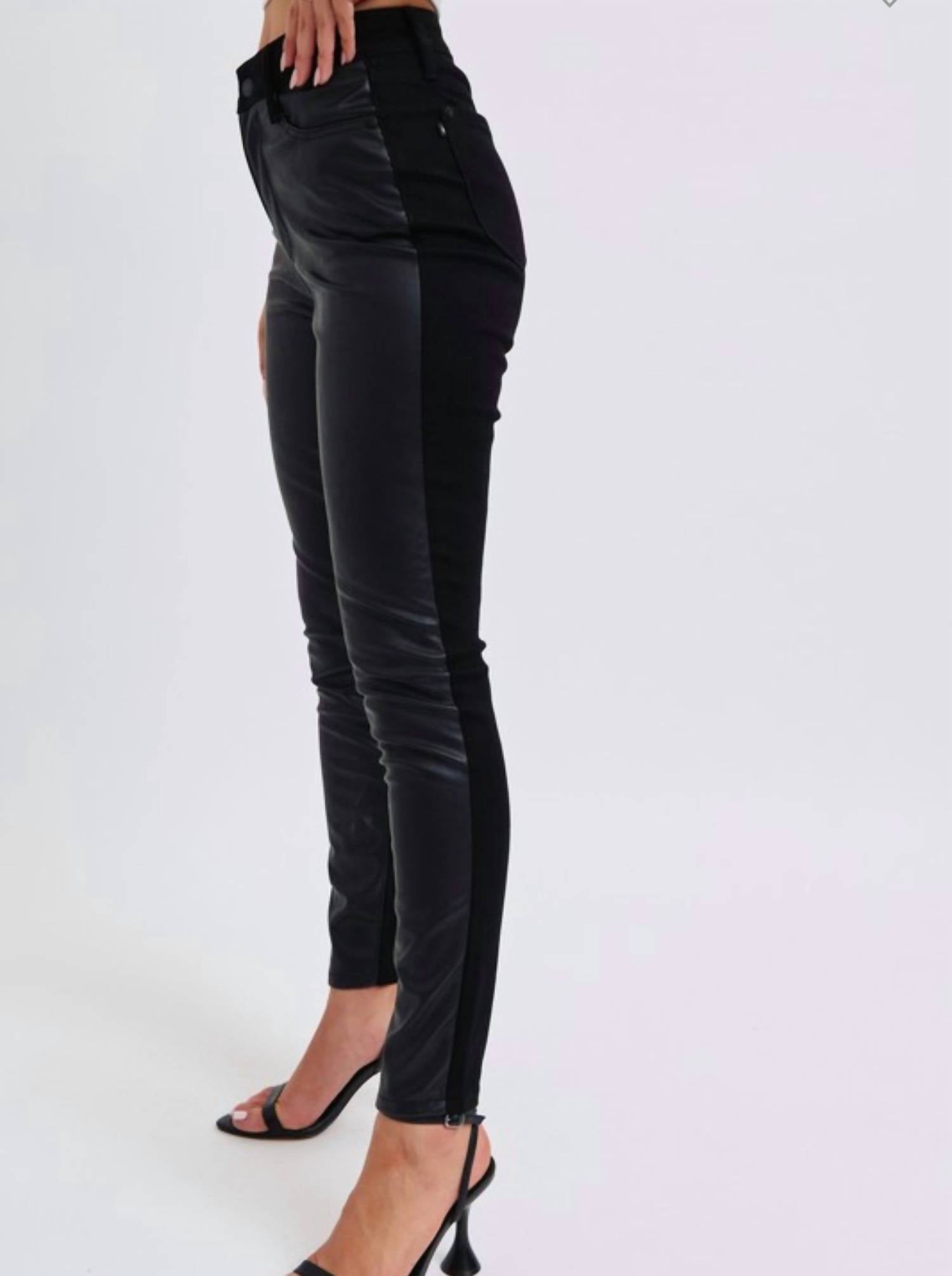 Everyone needs a good pair of skinny jeans and this is a style you'll keep reaching for no matter the season. Discover the Leather & Denim Jeans by Judy Blue, perfect for making a statement this fall. Featuring a unique mix of leather in the front and denim at the back, these black jeans offer a stylish twist on a classic skinny silhouette. Closure: Button closure. Note their comfort and stretch, making them a standout choice for a night out or dinner party.
