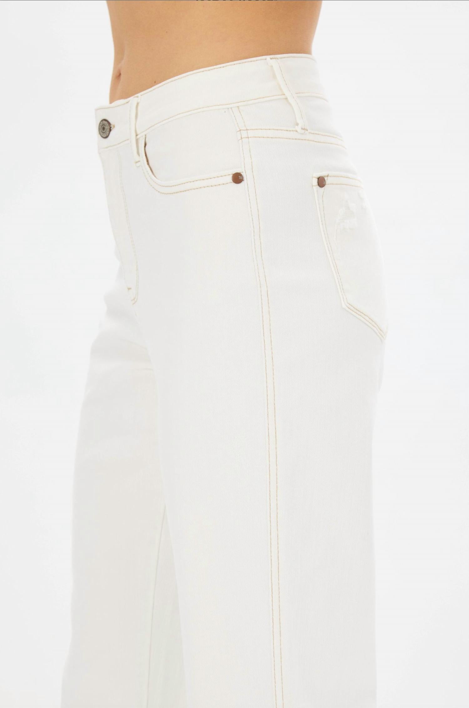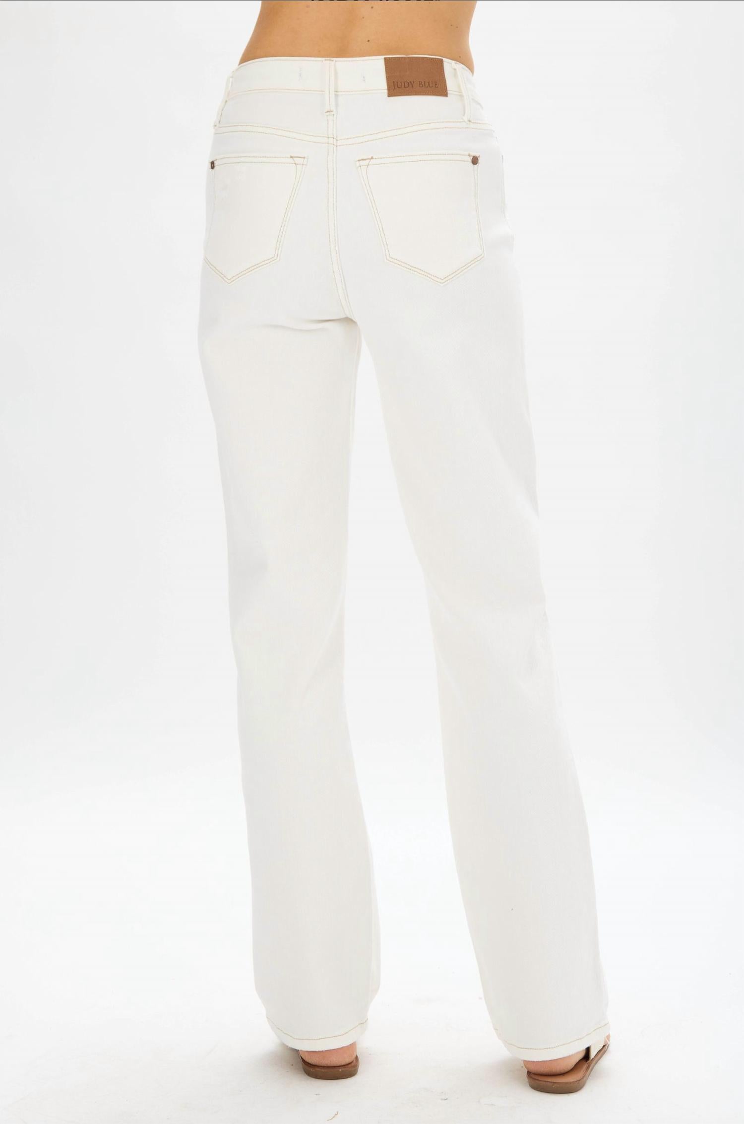 These must-have jeans are fit to perfection. Discover the Judy Blue Ecru Straight Leg Jeans, a must-have addition to your wardrobe that combines style and comfort effortlessly. These jeans are slightly distressed on the pockets, pant leg, and hem. Crafted with 93% cotton, 6% polyester, and 1% spandex, these jeans offer the perfect stretch for a flattering fit. They feature a high-rise waist with a 11" front rise and a 32" inseam, ensuring a sleek silhouette. Closure: Zip closure with mild distressing.