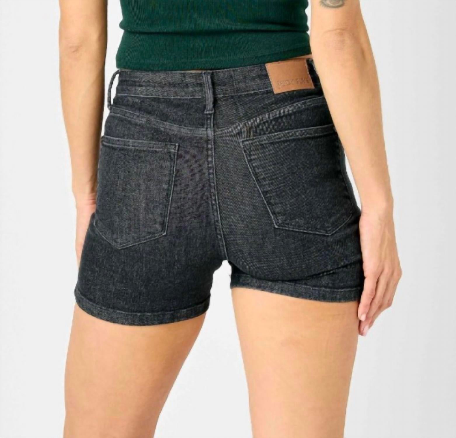 Jean shorts so versatile, you can literally wear them with anything. HIGH WAIST TUMMY CONTROL WASHED BLACK SHORTS Regular RISE:11" INSEAM:4" Plus RISE:12.25" INSEAM:5"