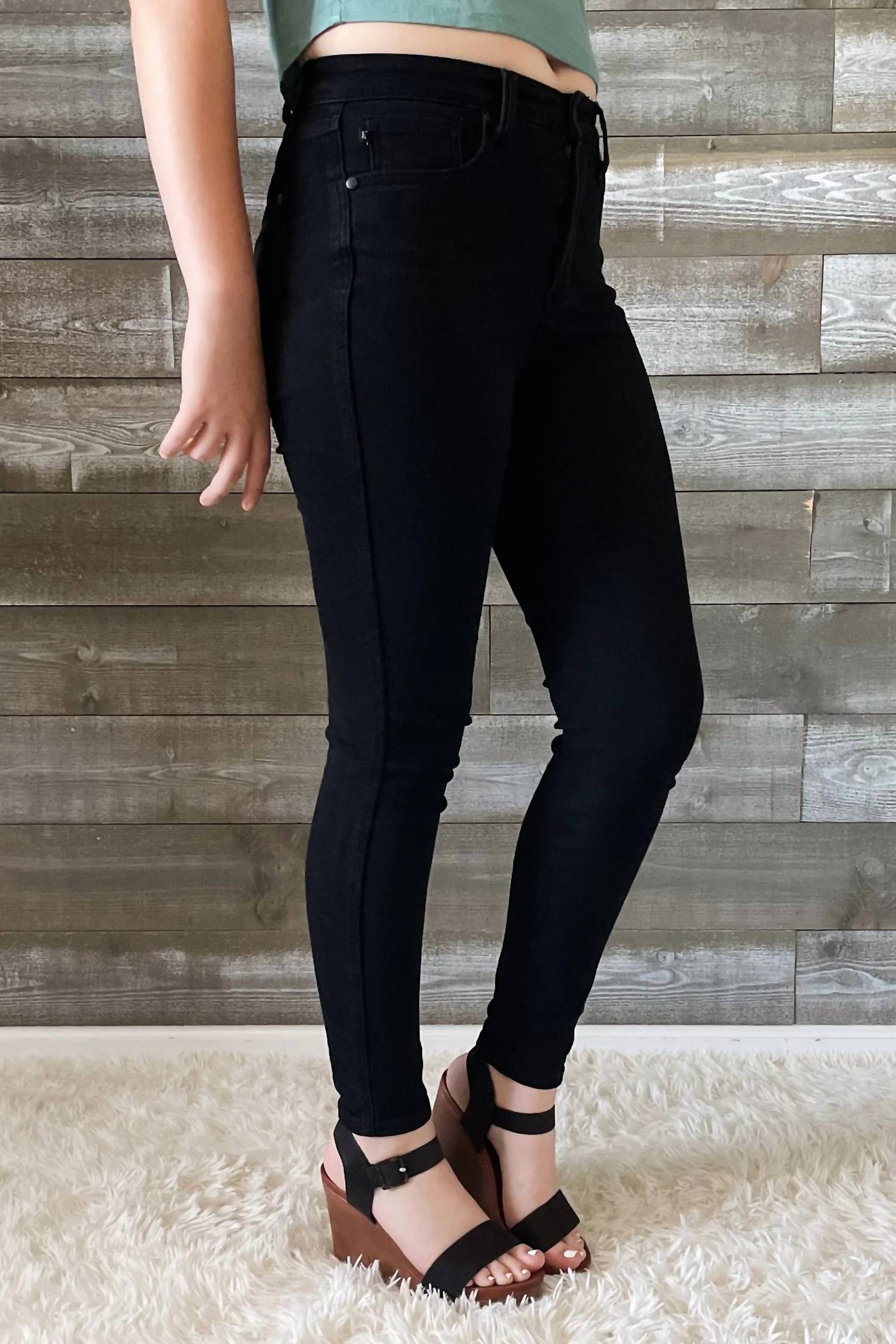 Everyone needs a good pair of skinny jeans and this is a style you'll keep reaching for no matter the season. Embrace a sleek silhouette with the High Rise Tummy Control Skinny Jeans by Judy Blue, crafted for both style and comfort. These black jeans feature a solid pattern with a classic high rise and skinny leg design, perfect for versatile dressing. Made from a cotton blend with 69% cotton, 23% polyester, 7% rayon, and 1% spandex, they provide a flattering fit for sizes 16W and 18W. Closure: Button closure. Care: Machine wash, tumble dry.