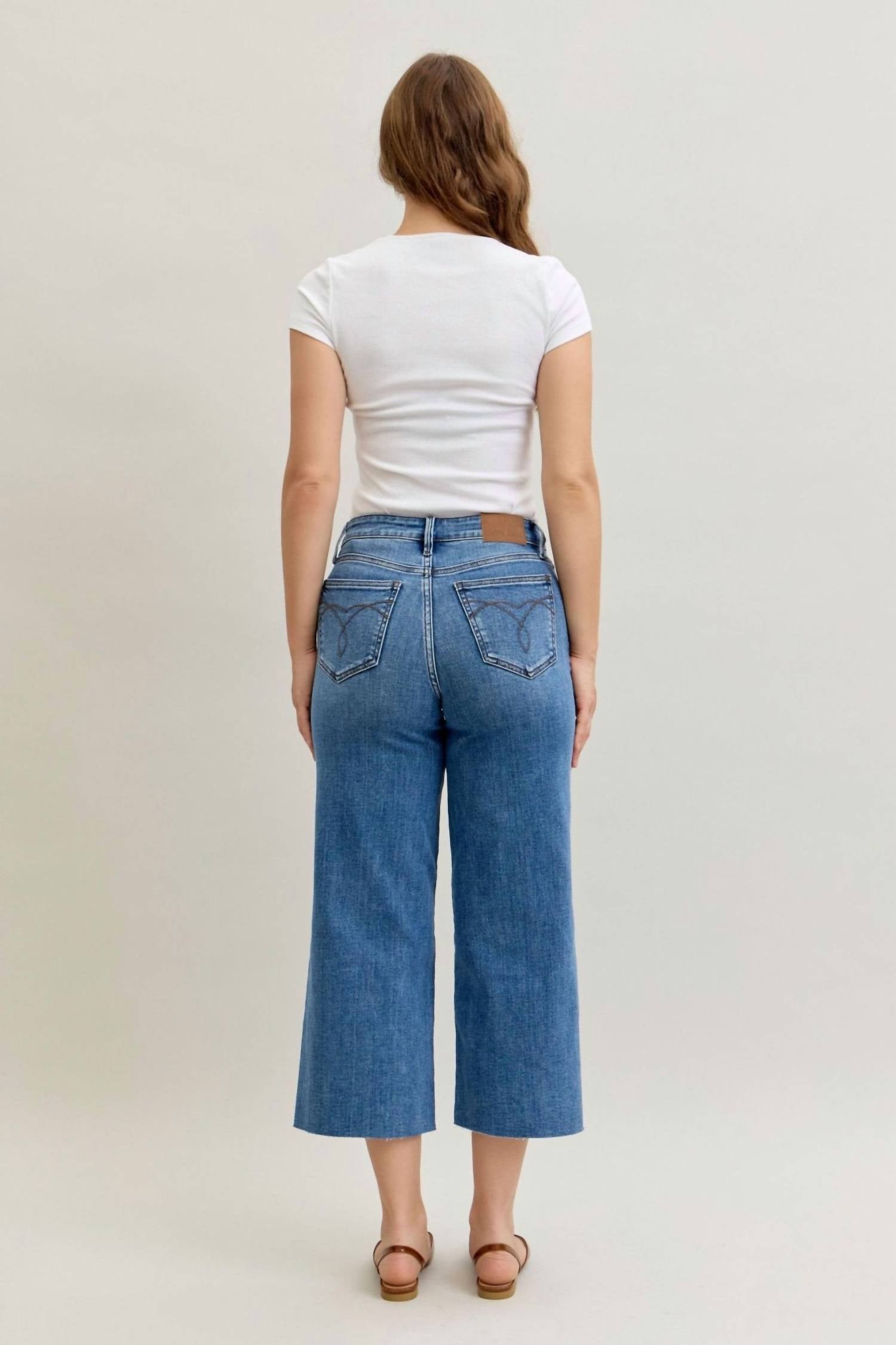 Judy Blue - High Waist Wide Crop Classic Raw Hem Jeans
