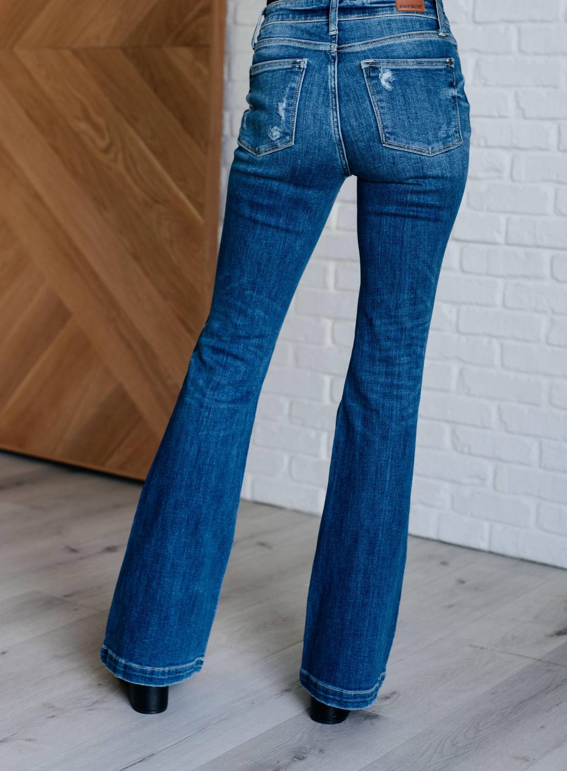 Fit to perfection, we love these high-waist jeans and you will too. Meet the Gabriella Distressed Button Fly Flare Jeans by Judy Blue, designed to elevate your denim collection. Crafted in a cotton blend with 93% cotton, 6% polyester, and 1% spandex, these jeans offer exceptional 4-way stretch comfort. Featuring a mid-rise fit and a distinctive button fly, the jeans flaunt a slim fit through the thighs with a stylish flare at the ankles. Explore various sizes with an inseam of 33 inches and a rise of 9 inches, ensuring true Judy Blue sizing.