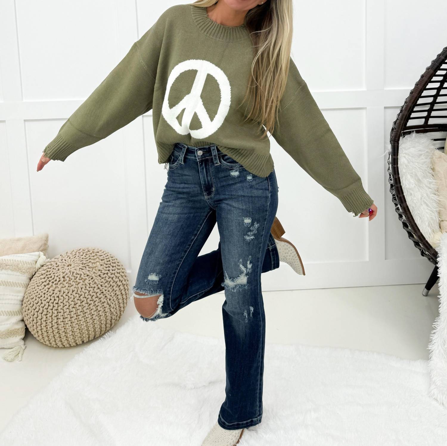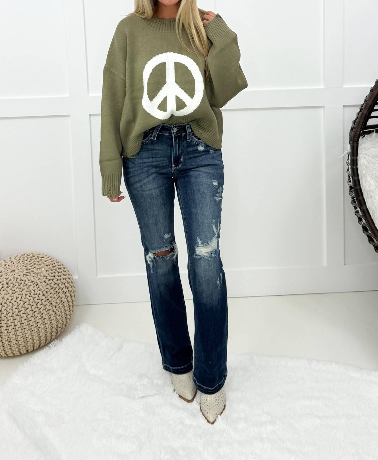 A boot-cut jean that not only looks good on, you'll be comfortable in them all day. Embrace timeless style with the Adore Me Distressed Bootcut Jeans by Judy Blue, perfect for evening events or casual outings. These jeans, in a sophisticated dark wash and adorned with light distressing, are made from a blend of 96% cotton, 6% poly, and 1% spandex for ultimate comfort and stretch. Featuring a regular rise of 10 inches and a 33-inch inseam, they ensure a flattering fit for every silhouette. Effortlessly versatile, these bootcut jeans with pocket details are machine washable and ready to tumble dry, making them a practical choice for any wardrobe.